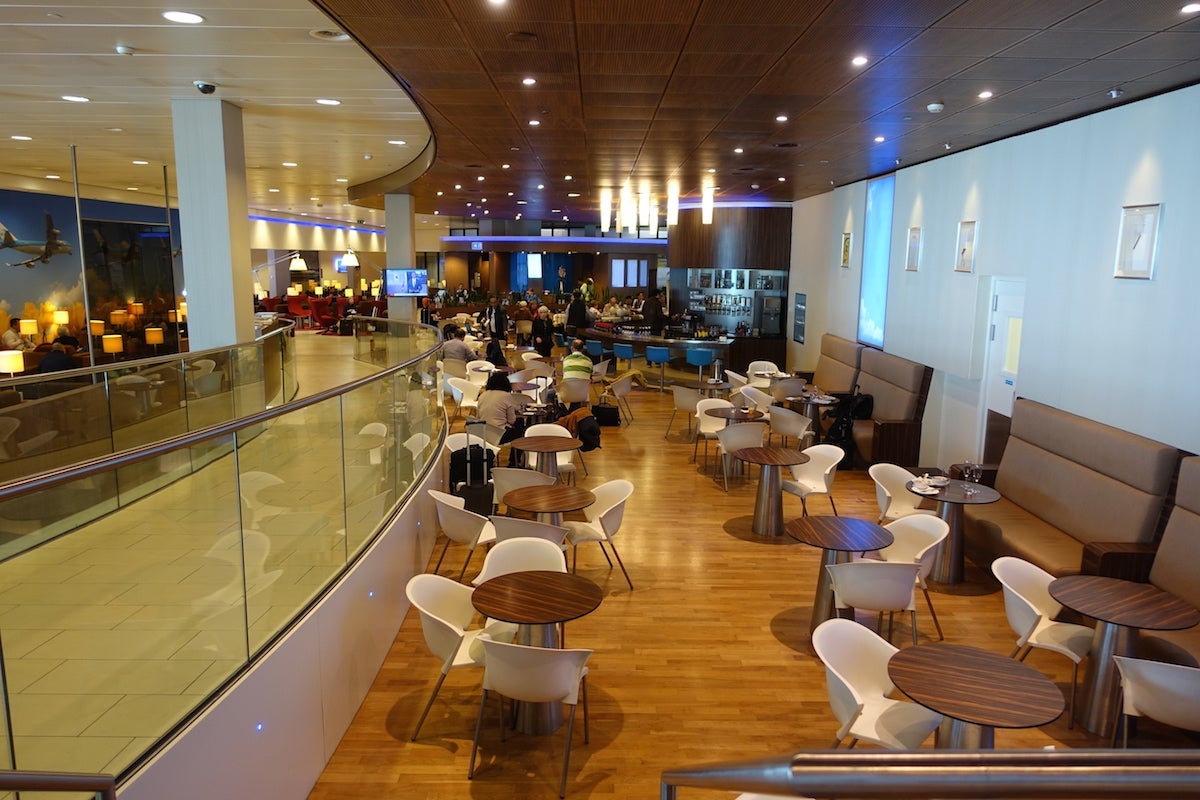 There's a café-style area as well as a few different snack buffets with wine, spirits and on-tap Heineken. The Wi-Fi was okay, but not especially fast.