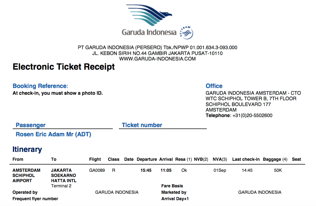 I thought the timing was interesting. That would make dinnertime on the flight about 6:00pm Amsterdam time and about 1:00am Jakarta time. Depending how long it took, that should have left plenty of time for sleep and then a late breakfast before landing in Jakarta at around 11:00am the following morning. I had some work to get done anyway, so it suited me.