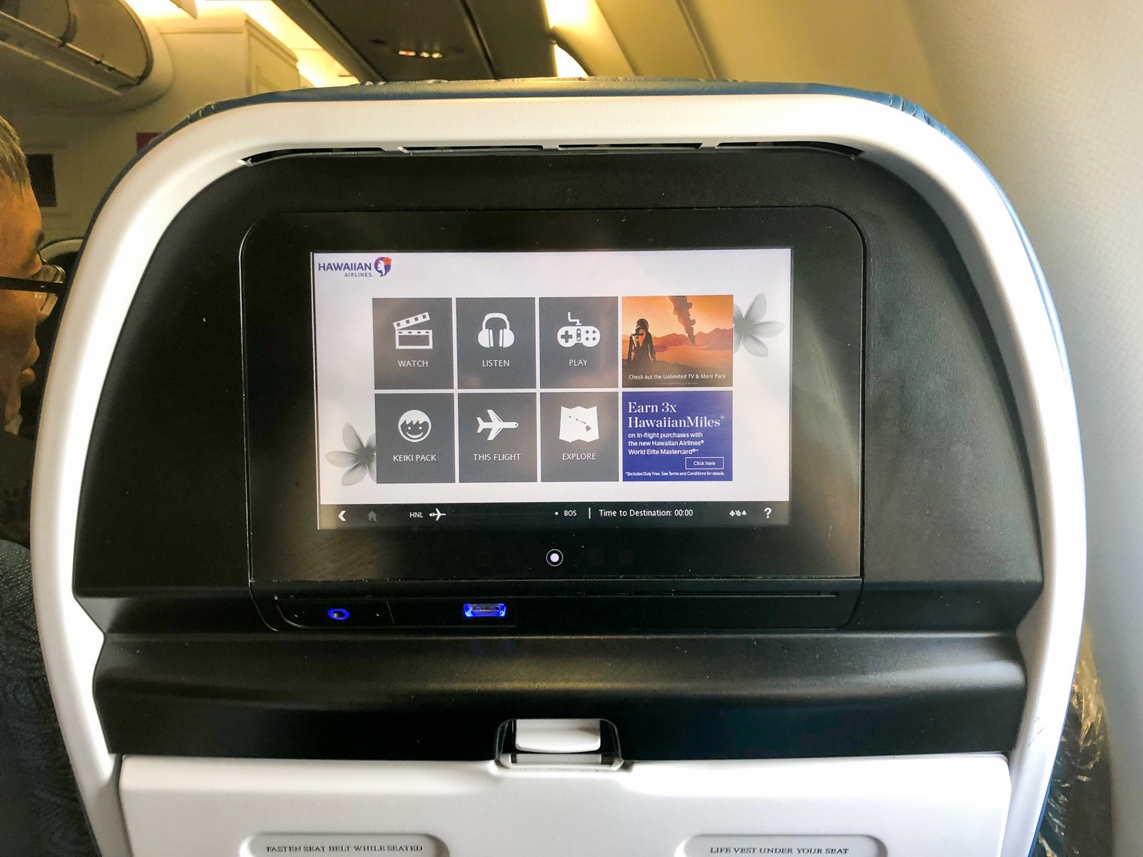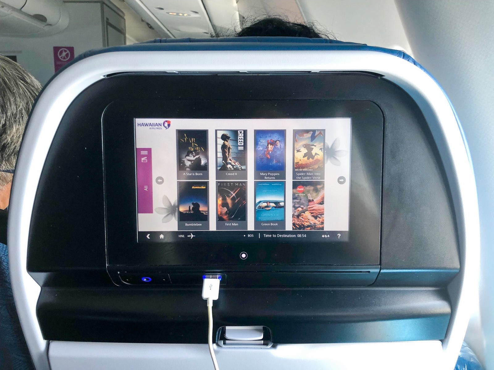 My second flight on Hawaiian, as with many long-haul red-eyes in economy, was sort of a mixed bag, though I did leave with a positive impression overall. This flight adds another excellent nonstop option to both Hawaiian and Boston Logan's networks, and Hawaiian gloriously treats the flight like an international long-haul. The IFE offers a decent selection of content, though the seat pitch definitely felt tight. But this is a domestic flight on a leisure-heavy route, after all. And that's really the point here — Hawaiian doesn't treat it like the competitors do: It offers real, complimentary meals and top-notch service — even free drinks! And though the airline's five-plus-hour flights to the West Coast have more limited for-purchase IFE, this service offers all its content complimentary, as it should be on a flight of this duration.