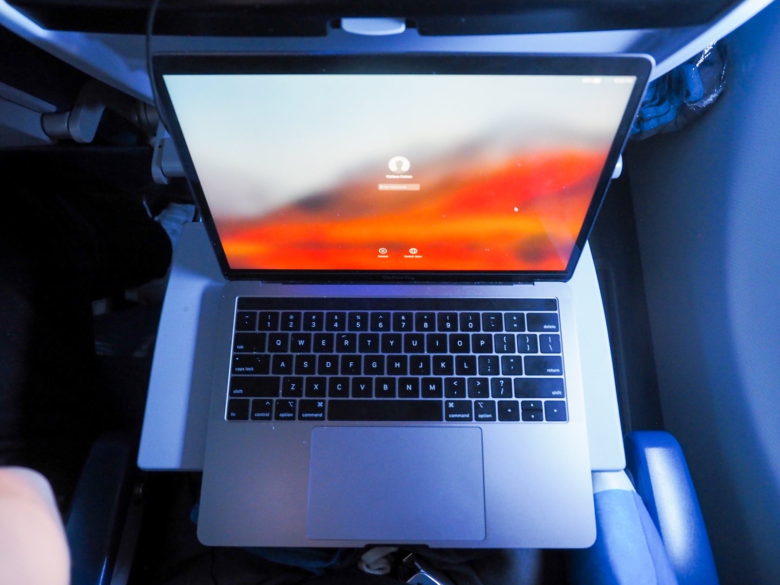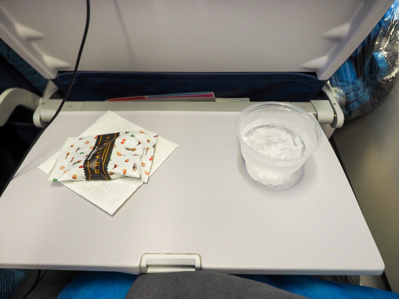 The tray table was fine, if a bit smaller than other carriers' tables (at least among those that aren't low-cost carriers). It slid forward and back, but I'd have had to have had a pretty small laptop to work comfortably, especially if the passenger in front of me reclined. With my 13-inch MacBook Pro, there was room, but not much. With no Wi-Fi on this flight, working wasn't a possibility, anyway — not that I really minded.