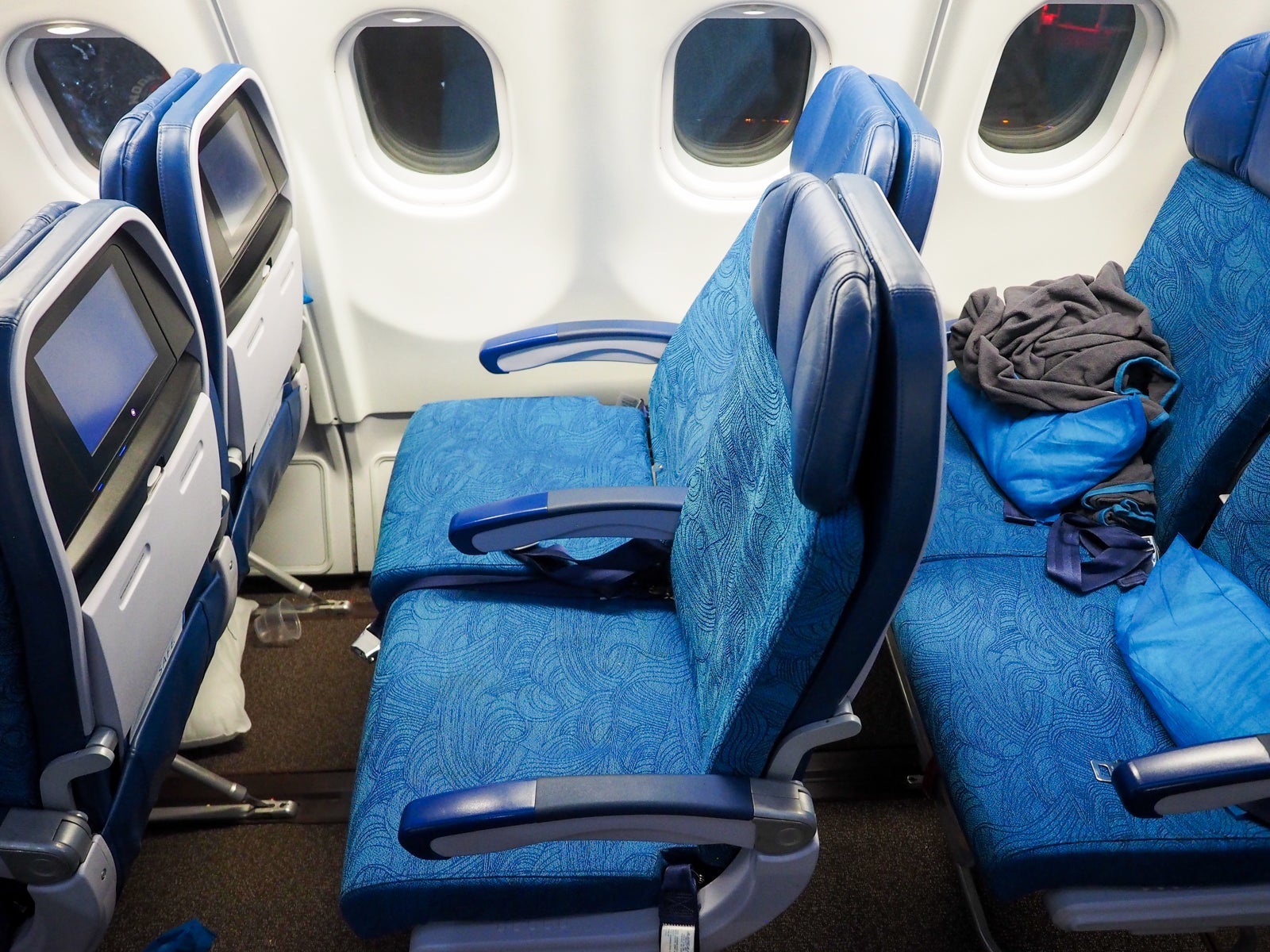 Pitch definitely felt tight. Recline was relatively substantial, and this was probably because the bottom cushion slid out in lieu of actual seat recline. I'd wager my seat was a little bit broken, which is why it was already out slightly and felt particularly short on pitch. During the flight, the seat felt to be on the thin and worn out side, and when it came time to sleep, it was uncomfortable. Sure, it's never particularly easy to get comfortable trying to sleep in an economy cabin, but with the limited pitch, it felt as if I had very little space.