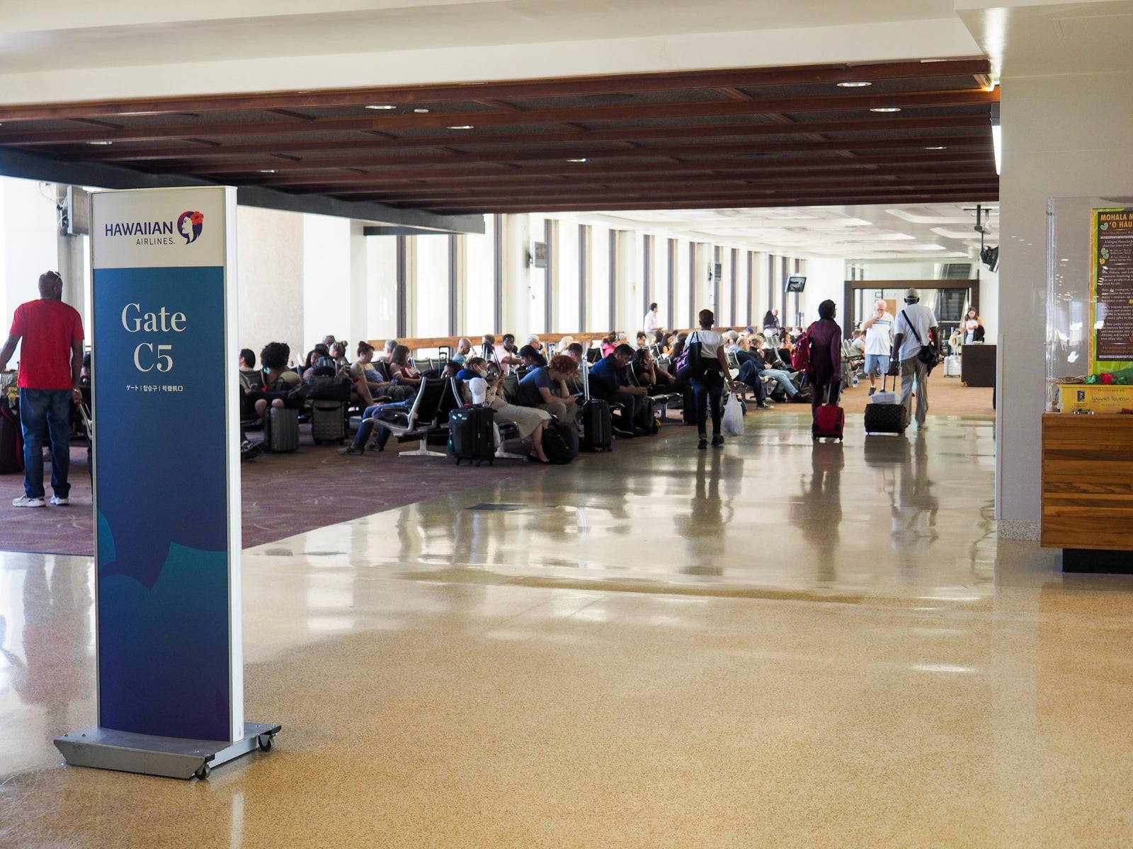 The flight was departing from Gate C5, a bit of a walk from the central security checkpoint, though HNL's awesome outdoor walkways made the 15-minute journey pleasant.