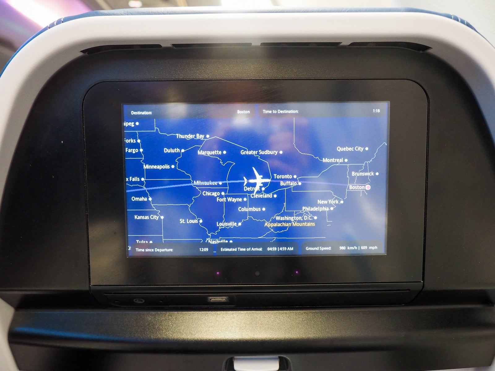 The screen was clear and the system mostly intuitive, with more features than the somewhat-clunky iPad set up in first class. The screen itself reminded me of what several airlines, like Delta's retrofitted 767s, have installed on their fleets, with a high-definition, immovable screen (read: no tilt for when passengers recline) and motion-activated lights for the USB and headphone port.