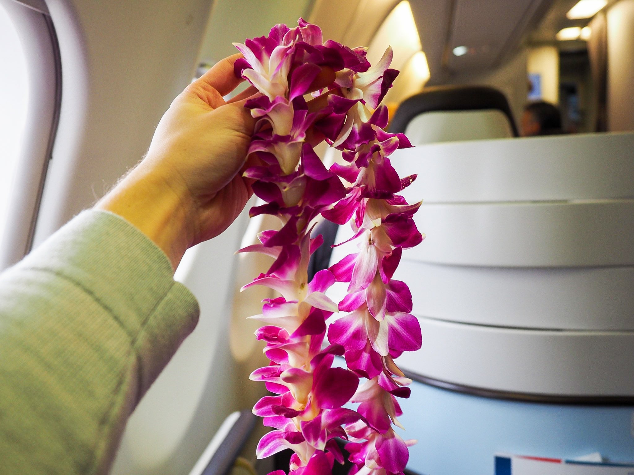 Within five minutes, my boarding pass had been scanned, and I had been lei'd (those are real flowers, by the way).