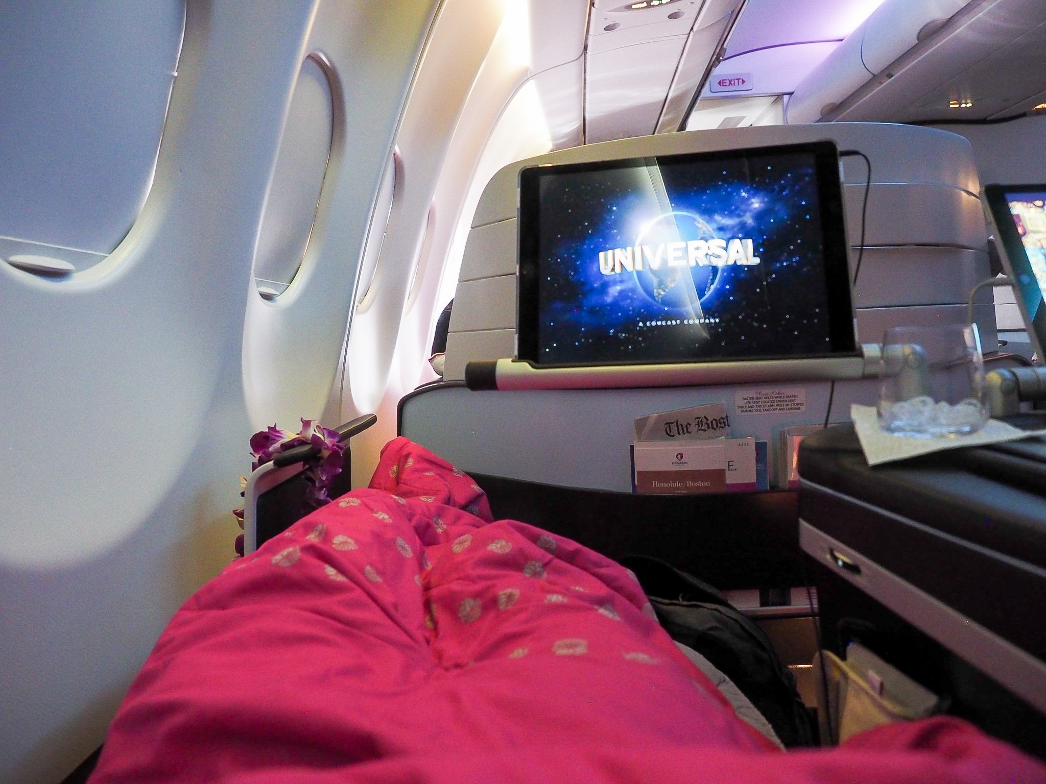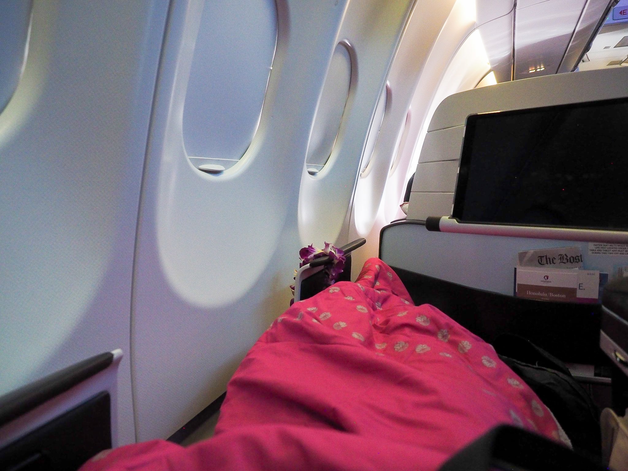 As I mentioned before, the seat felt a bit narrow, but I slept mostly comfortably until turbulence over the Pacific woke me up.