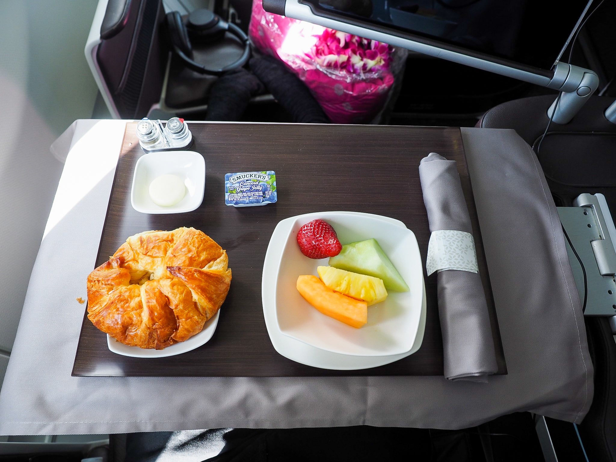 There would be two meals on the flight: The first, a brunch after takeoff, and the second around three hours prior to landing in Honolulu.