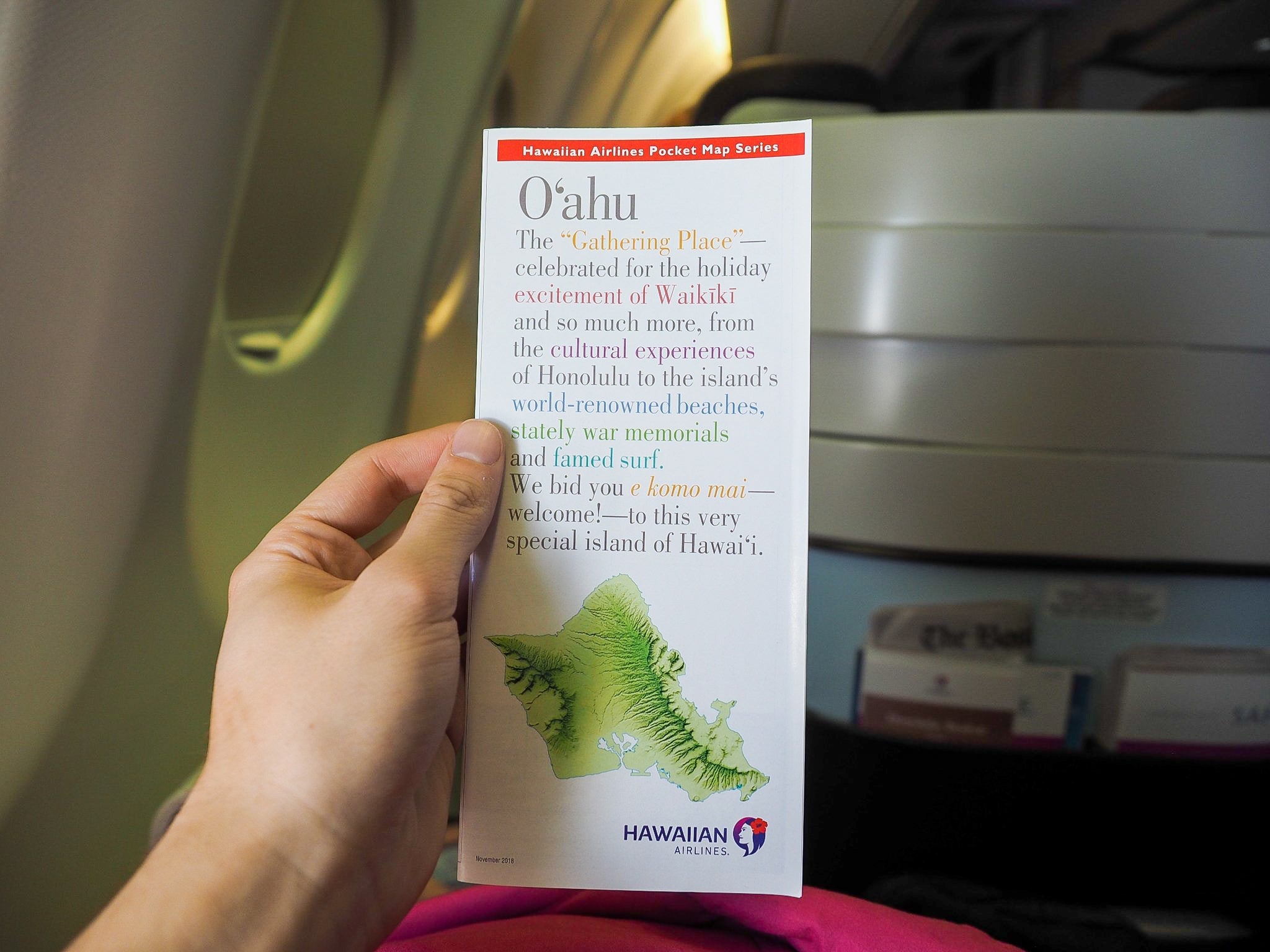 About an hour before landing, we were handed a Hawaiian declarations form, though no one ended up collecting them. They also distributed a map of Oahu.
