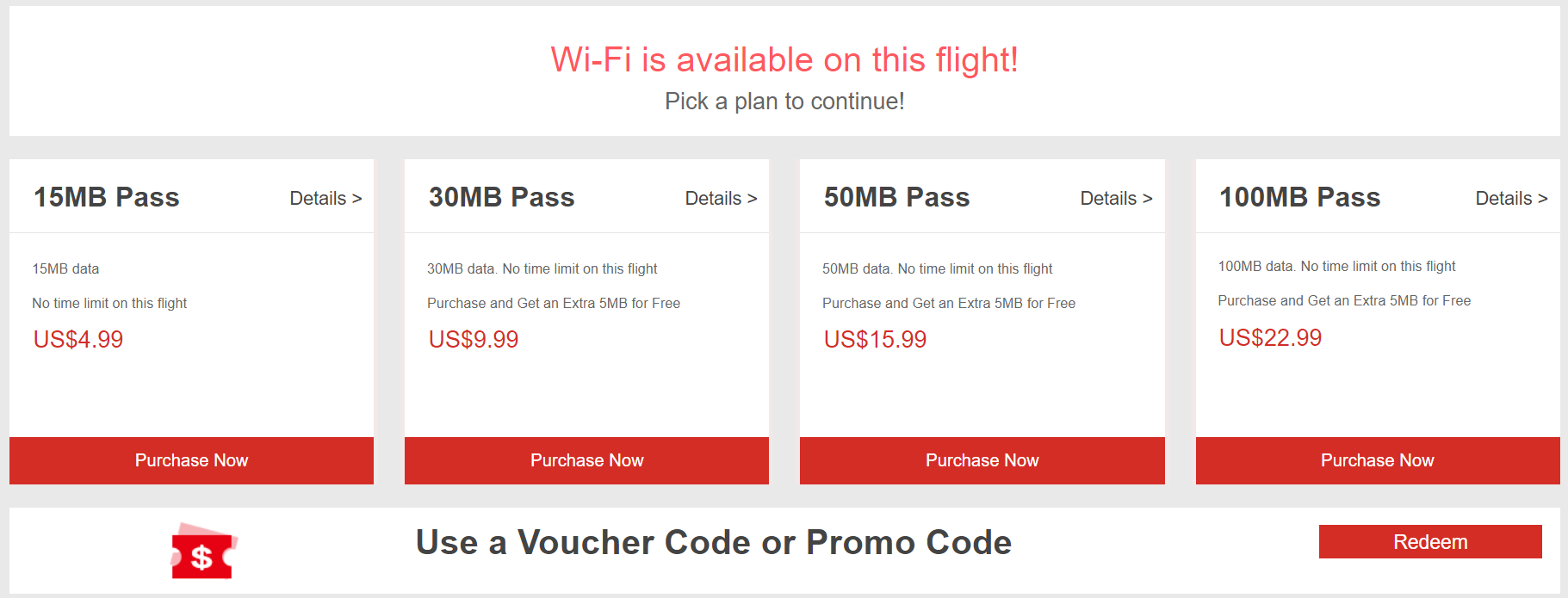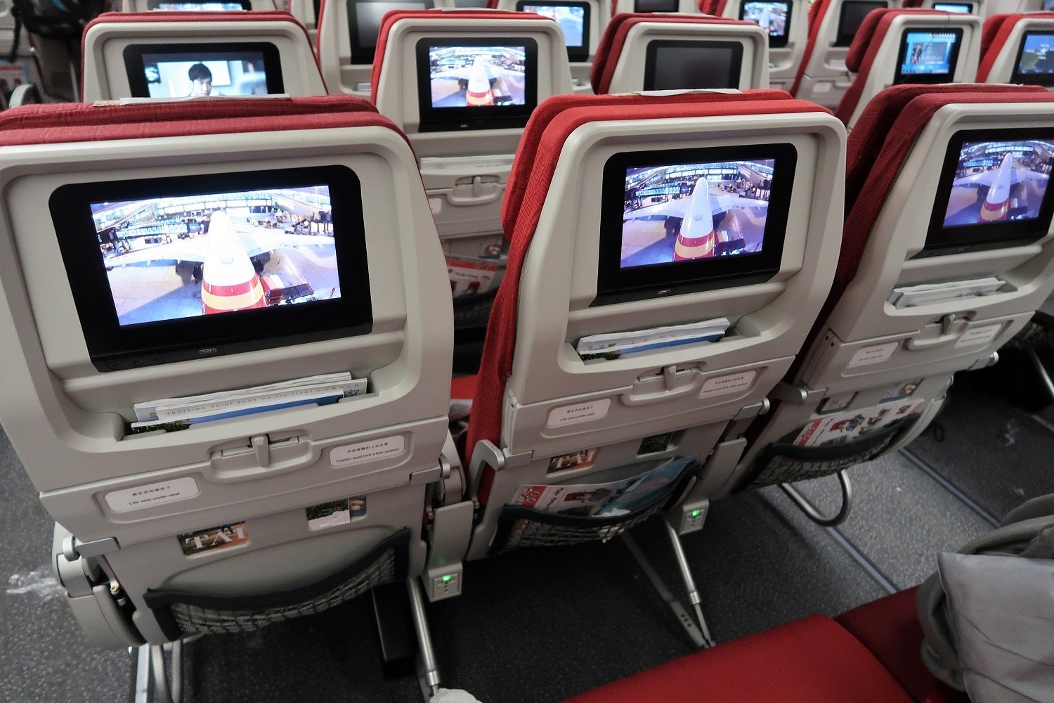 The Hong Kong Airlines A350-900 was enabled with Wi-Fi. Packages were data-based rather than time-based and cost anywhere from $4.99 for 15 MB to $22.99 for 105 MB.