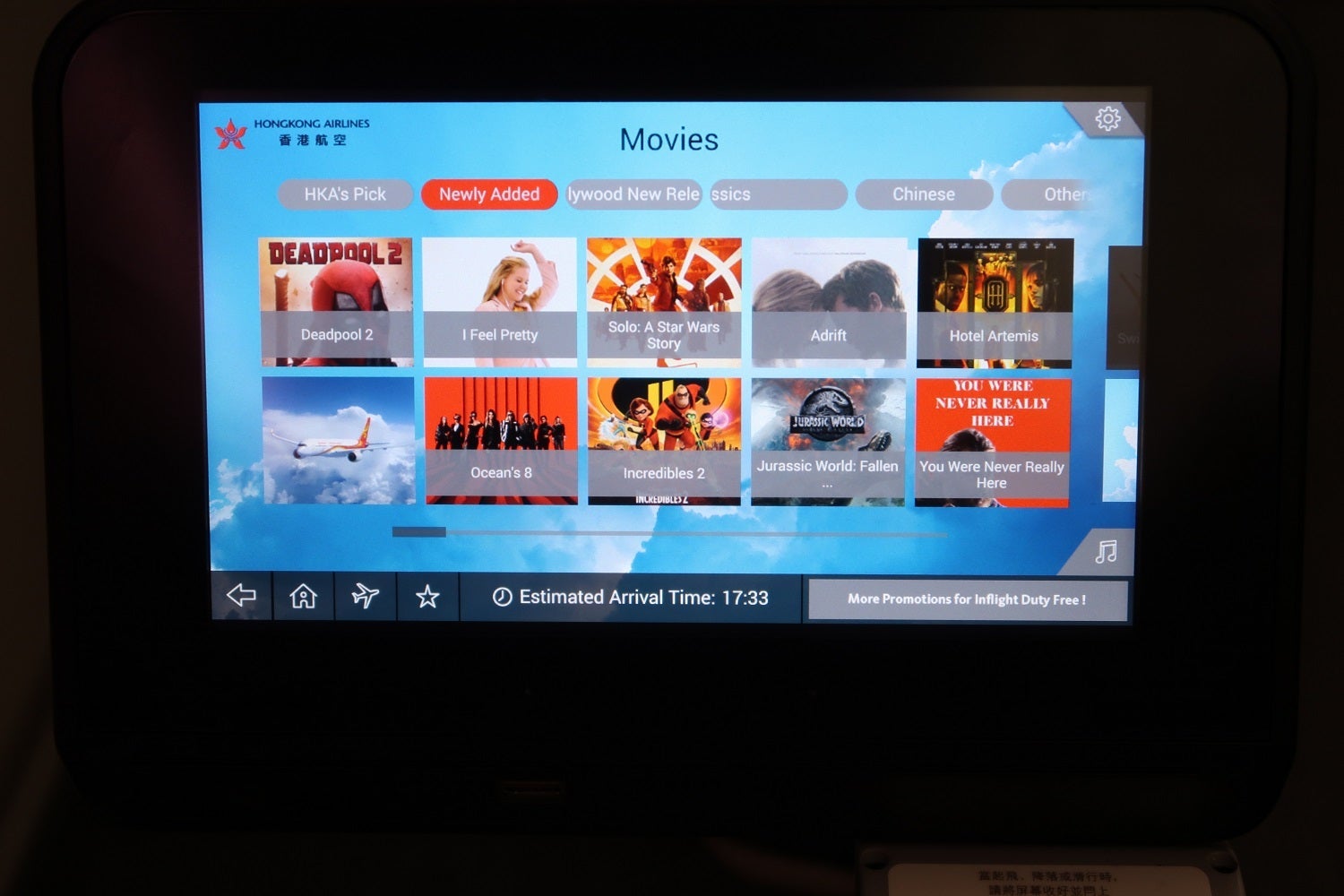 On my flight, the IFE system offered 100 movies and 54 TV shows, including the entire first season (seven episodes) of "Breaking Bad," a couple midrun episodes of "Friends" and, naturally, several Chinese movies and shows in Cantonese and Mandarin. The system also offered three channels of live TV (CNNi, BBC World News and Sport24).