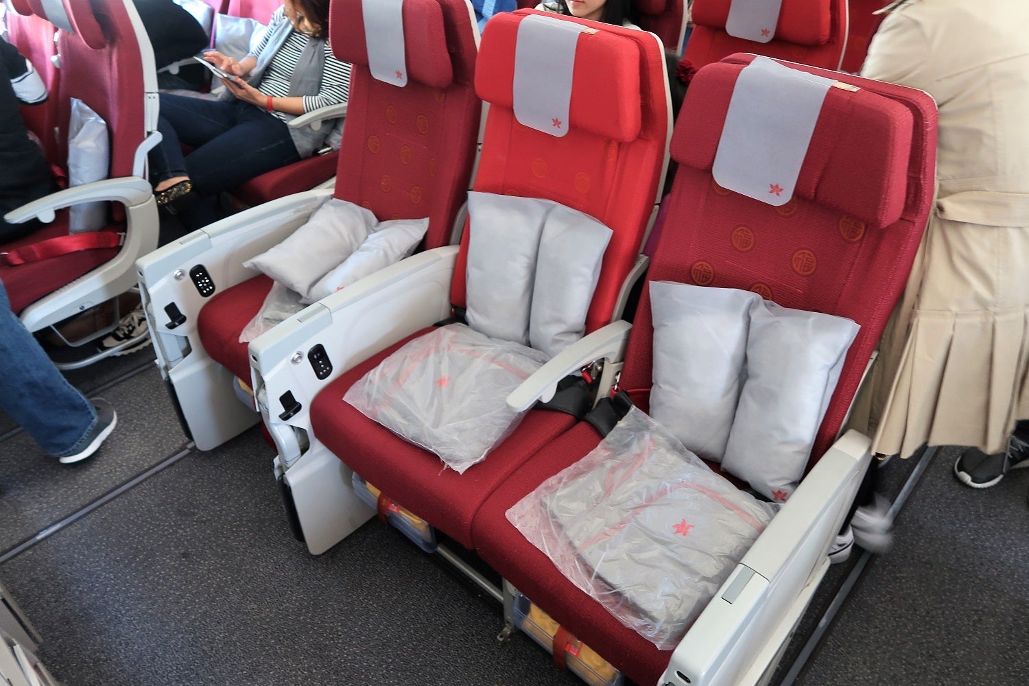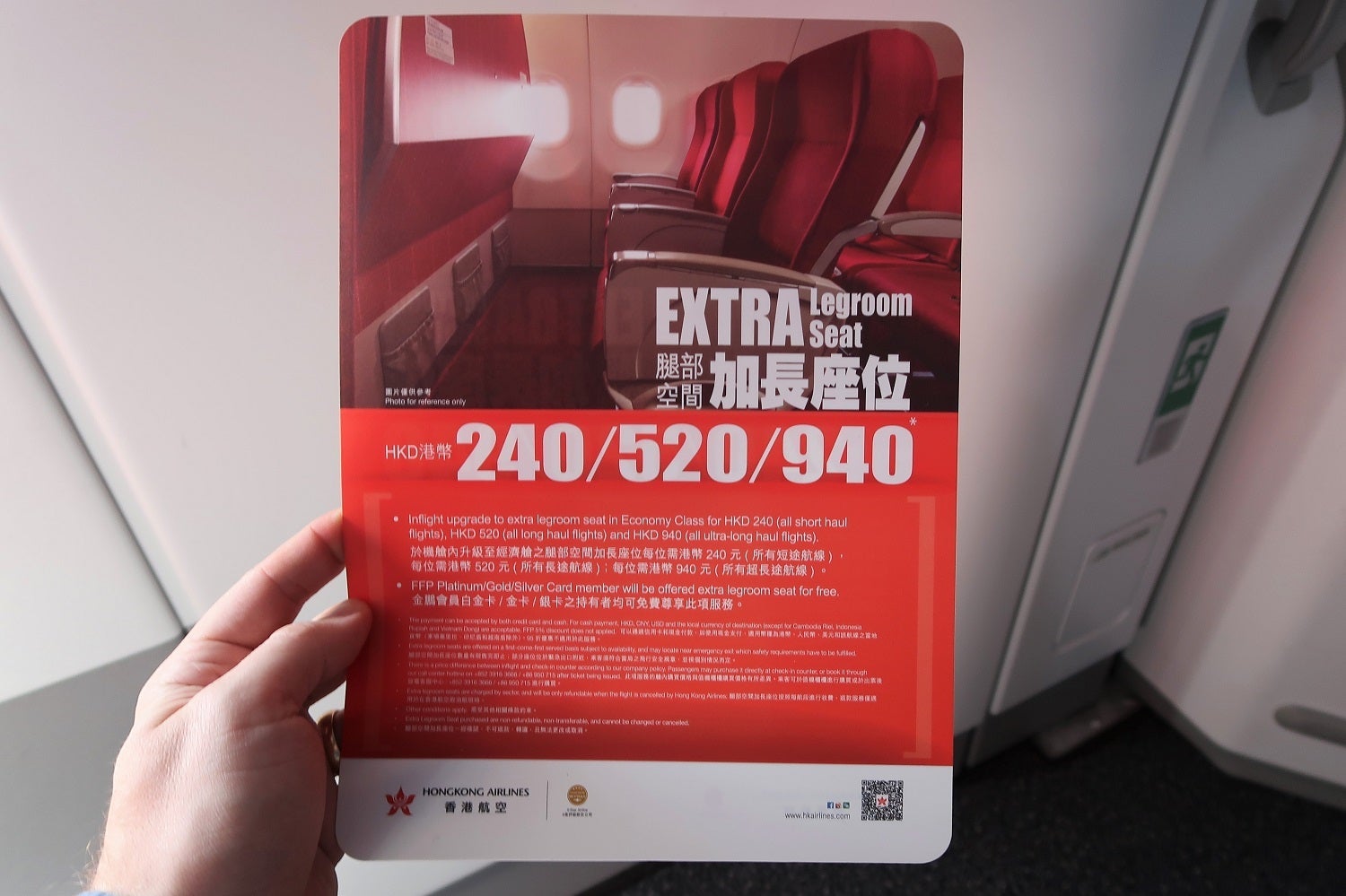 Per the placards left on these seats, you had to pay 940 Hong Kong dollars ($120) for these seats on board.