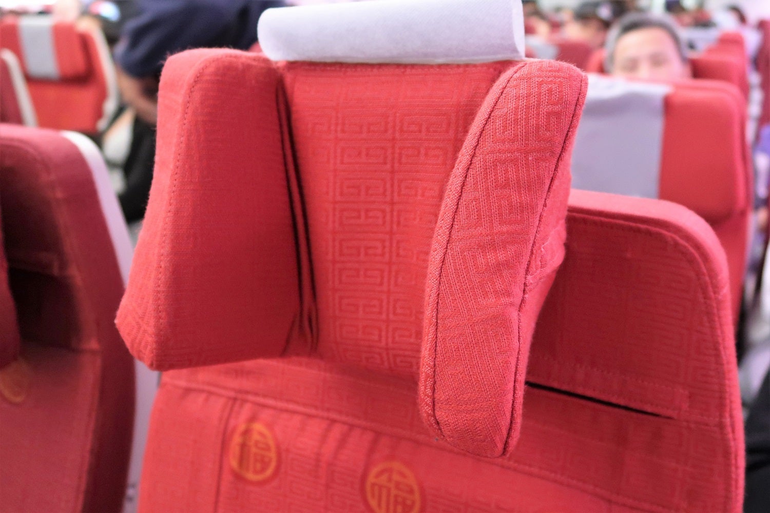 The only exception to the 3-3-3 arrangement was Row 51, the emergency exit and bulkhead row. This row was arranged 2-3-2 with no window seat on either side. There seemed to be enough room for a window seat, but it looked like Hong Kong Airlines didn't want to frustrate passengers sitting in these seats with the emergency-exit-row slide protruding into their legroom.