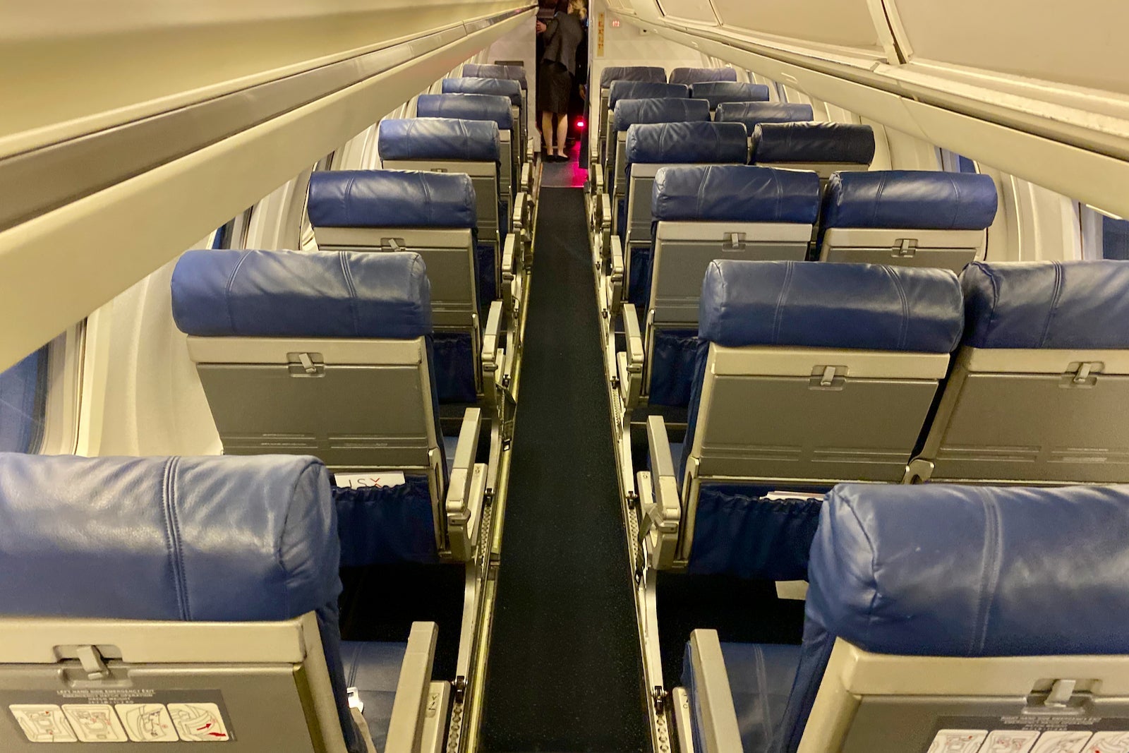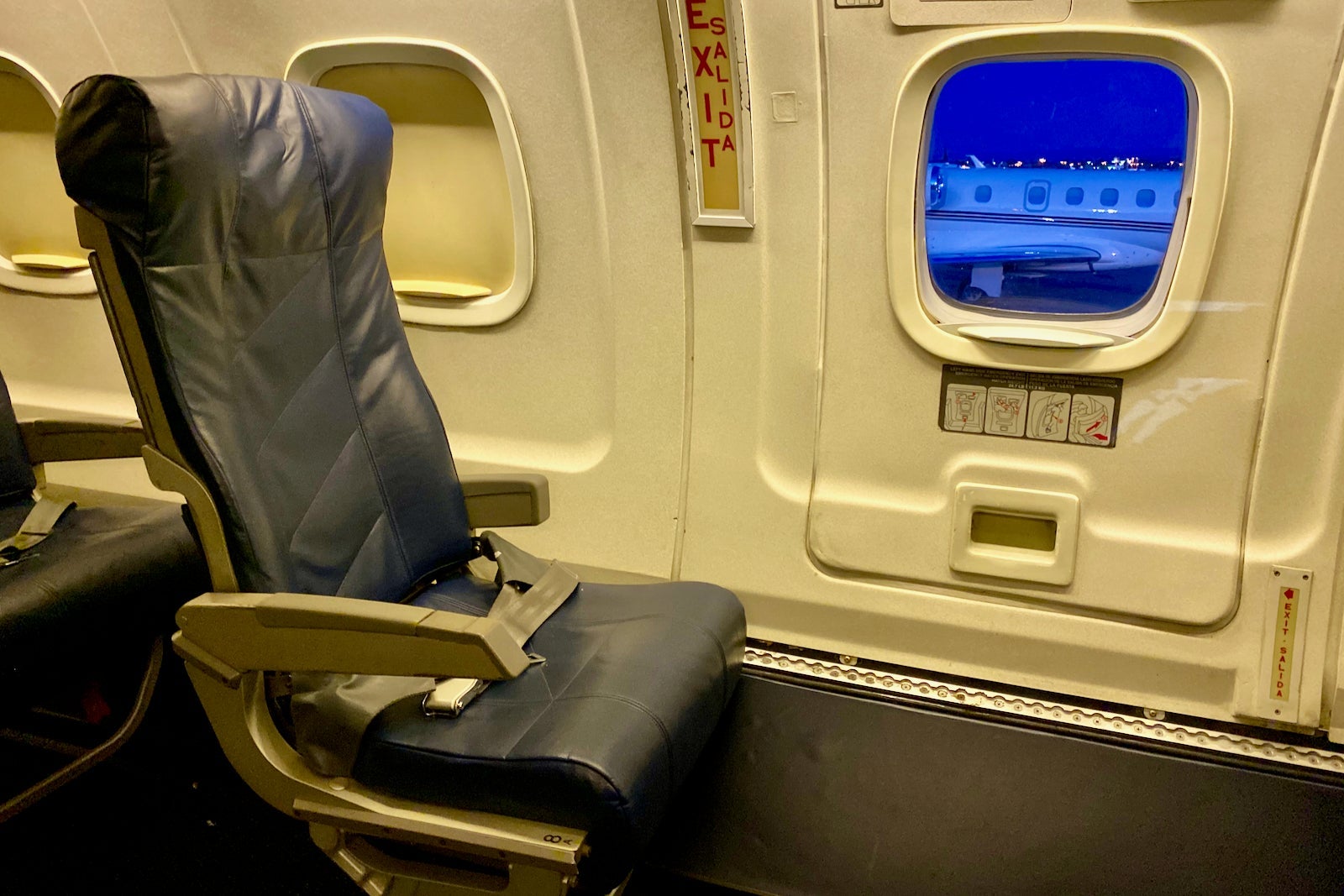 The exit row also has copious legroom. All regular seats have a well-above-average 36 inches of pitch, and the exit row has 50.