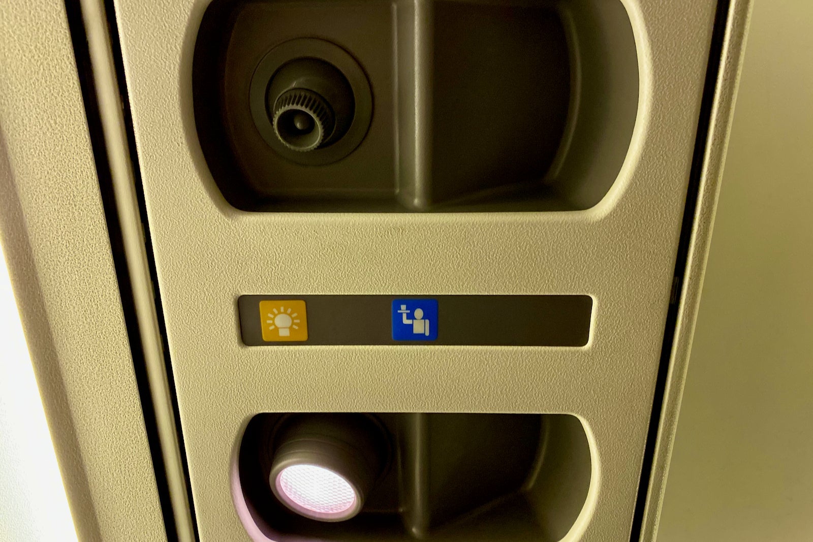 The cabin was kept at a comfortable temperature throughout the flight, but if you want to adjust it to your liking there is an individual air nozzle (and light) overhead.