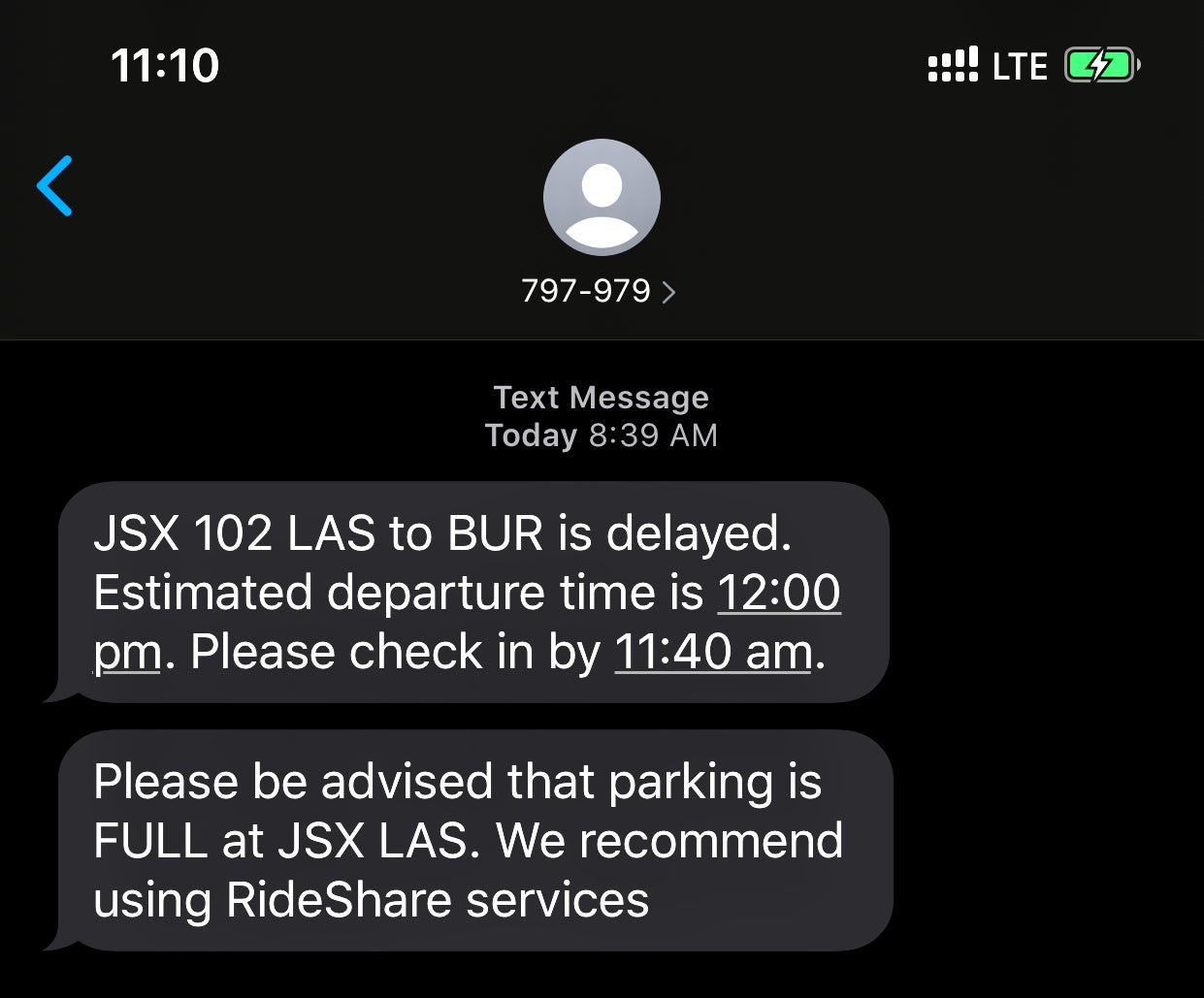 My original plan was to review JSX on a round-trip from LAS to Burbank and back on the same day. That morning, I received a text saying that my flight was delayed by 90 minutes. So I arrived at the Atlantic Aviation FBO at 11:30 a.m. to check in for my delayed flight.