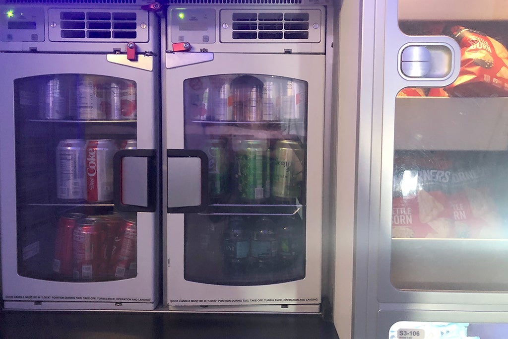 Flight attendants came around with a snack basket stocked with small bags of Cheez-Its, cookies, popped kettle chips and more, and passengers could also grab snacks and soft drinks from a self-service area.