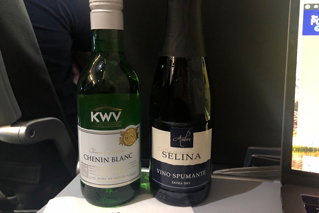 While I didn't eat anything besides snacks, I figured I'd take advantage of my Mosaic status to enjoy free alcohol. Once the flight attendant serving me learned I was Mosaic (and therefore wouldn't need to pay for food or drink), she encouraged me to double down on the chenin blanc. At her suggestion, I went with a sparkling wine, which I opened first. The cute little bottle of white wine, meanwhile, is still living in my refrigerator in Brooklyn.
