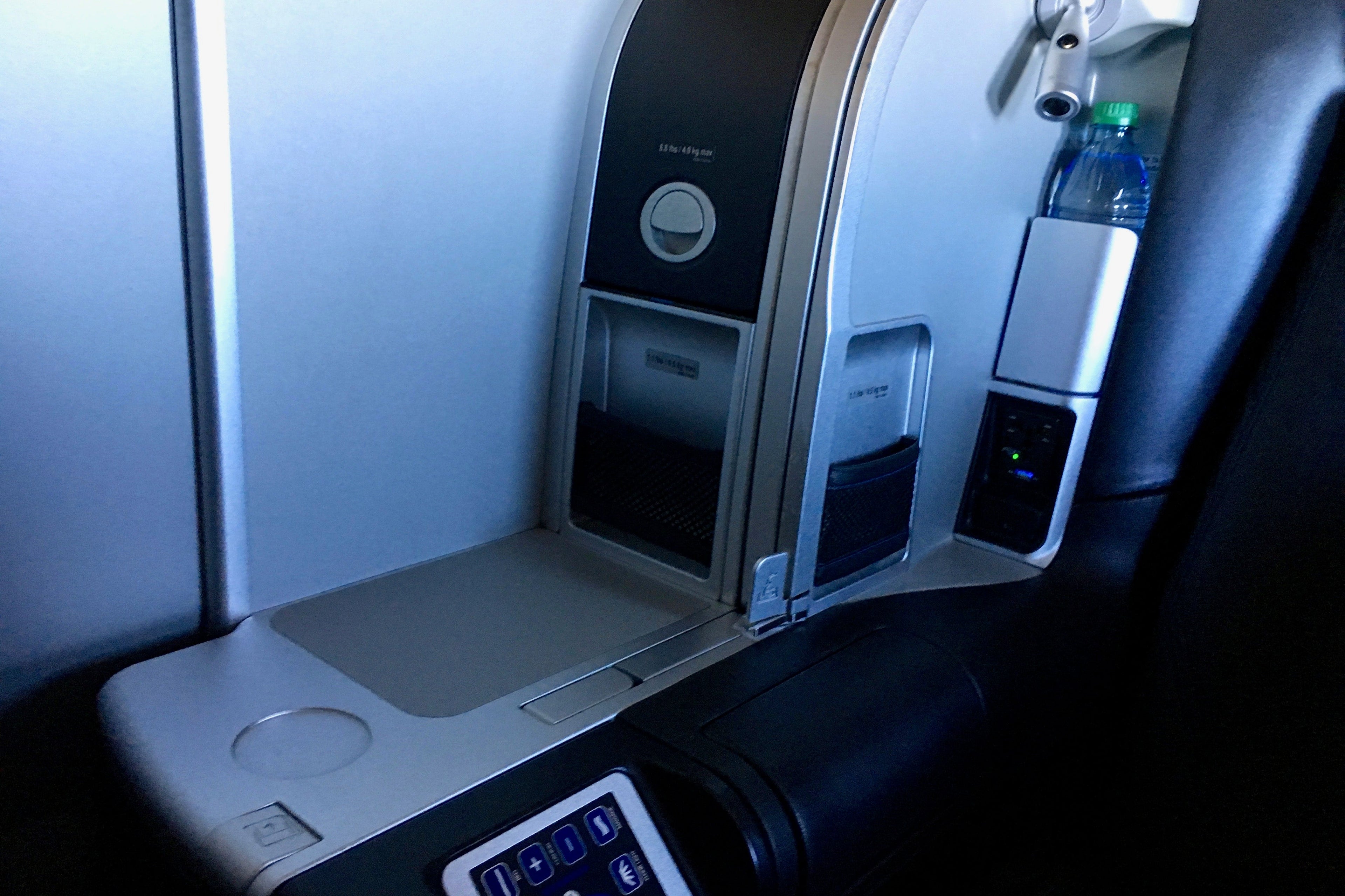 Waiting at my seat was a signed note from the cabin crew on top of a big pillow and a soft blanket. Personal touches like this can go a long way. Once I was settled in, the two Mint flight attendants, Vanessa and Hector, went around greeting every passenger by name, explaining seat functions and distributing menus.