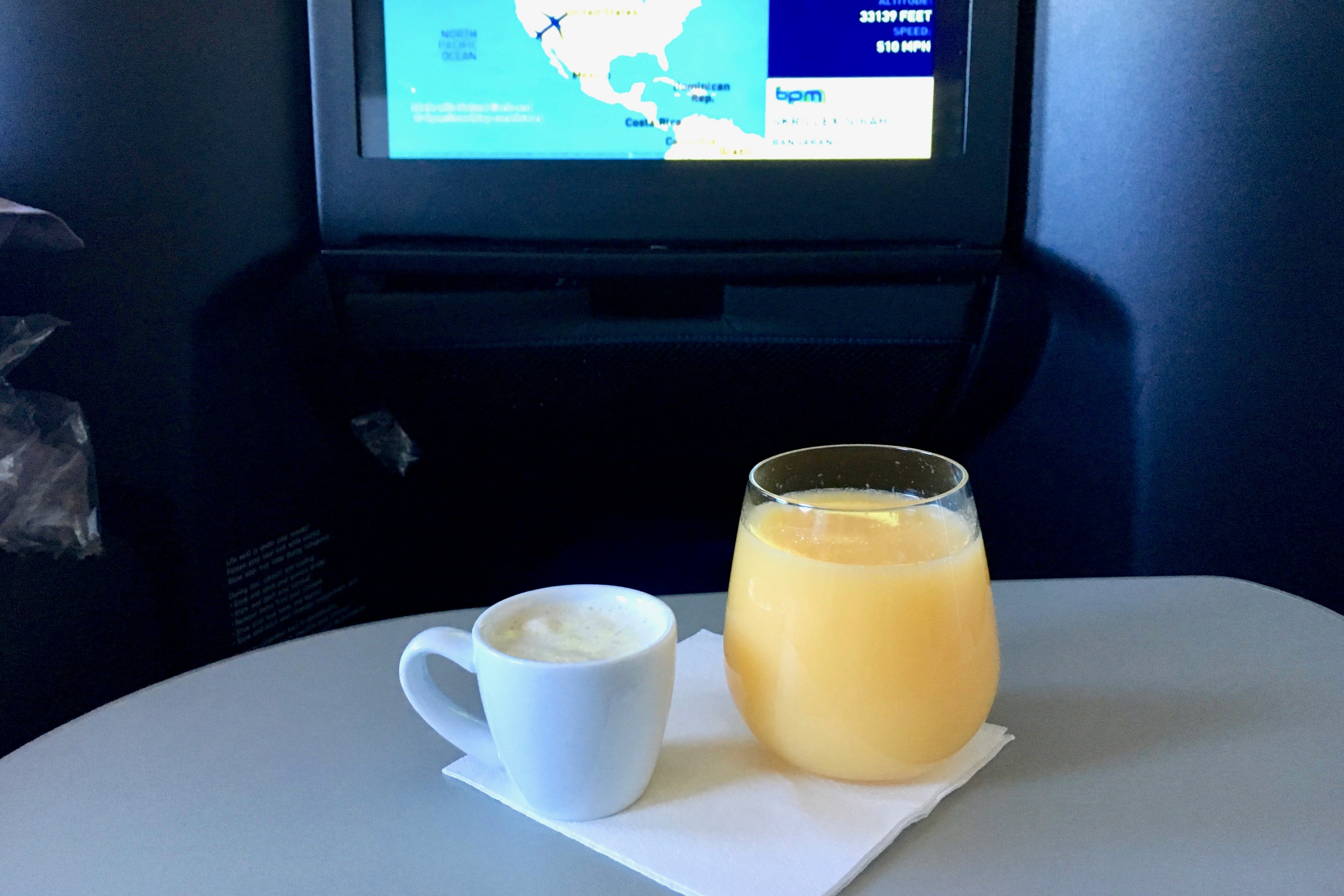 Once that tray was cleared, I was offered locally sourced artisanal ice cream — flights leaving Los Angeles get it from Coolhaus — and the choice of an espresso beverage. The flavors of ice cream are always a surprise, and the Tahitian Vanilla Bean and Banana Foster flavors I was served did not disappoint.