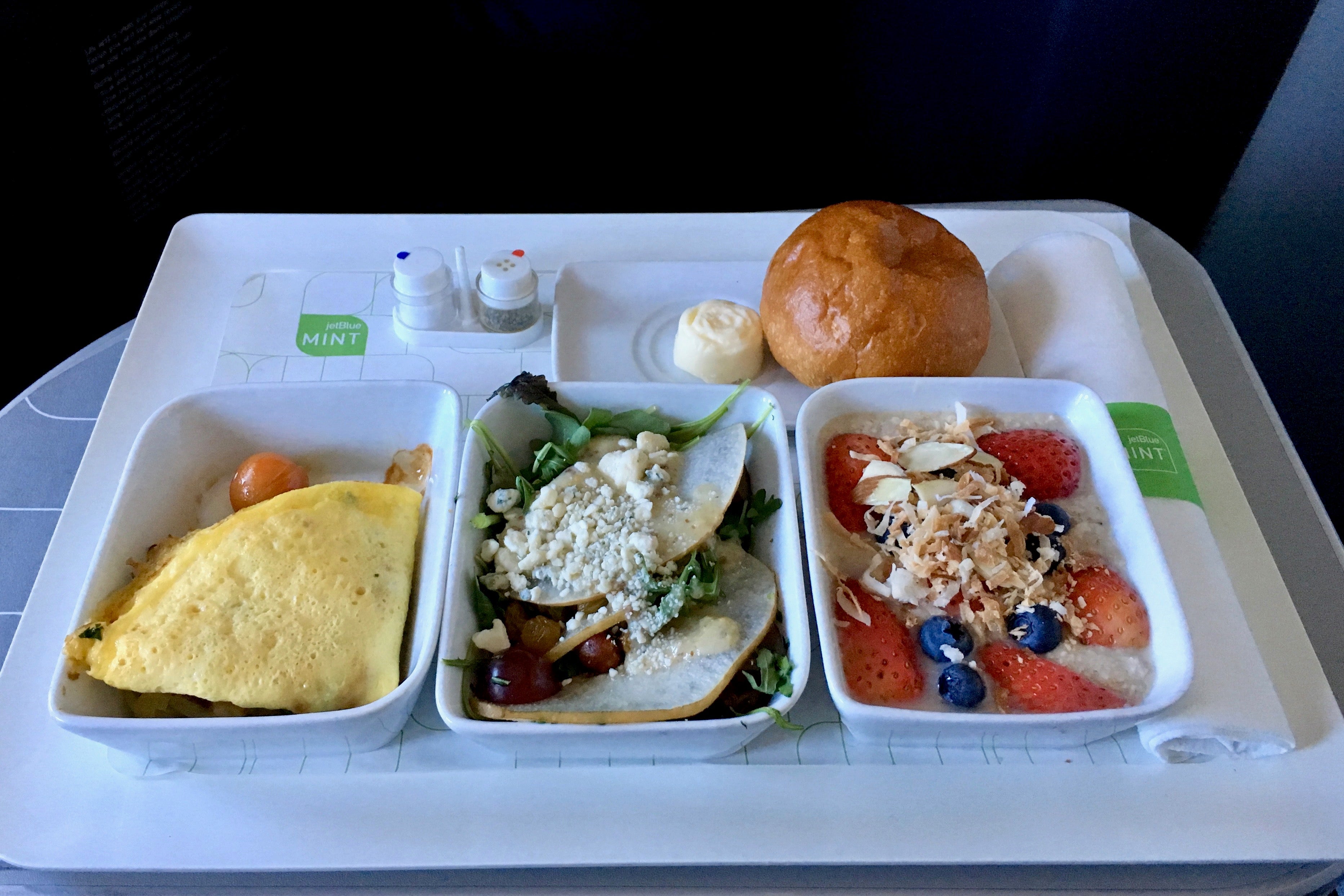 JetBlue is known for having the best domestic in-flight meals. You get to choose three out of five tapas options, all inspired by the New York City restaurant Saxon + Parole. The menu changes monthly and is always available for viewing on JetBlue's website.