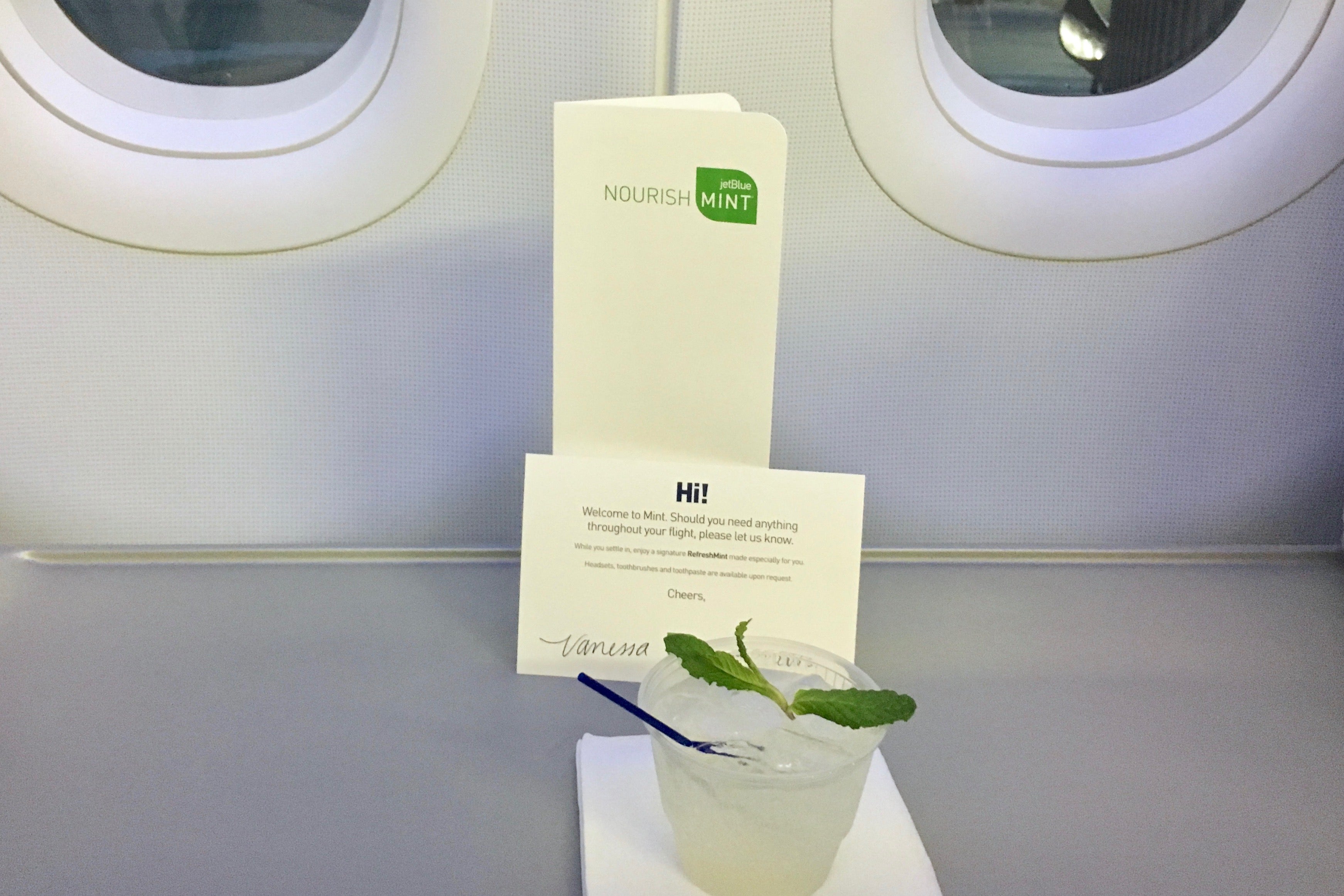 Before takeoff, passengers were offered the signature JetBlue RefreshMint pre-departure beverage, a honey-infused limeade with fresh mint that can be made with or without vodka. I went for the virgin limeade and ended up liking it so much that I ordered another one later on during the flight.