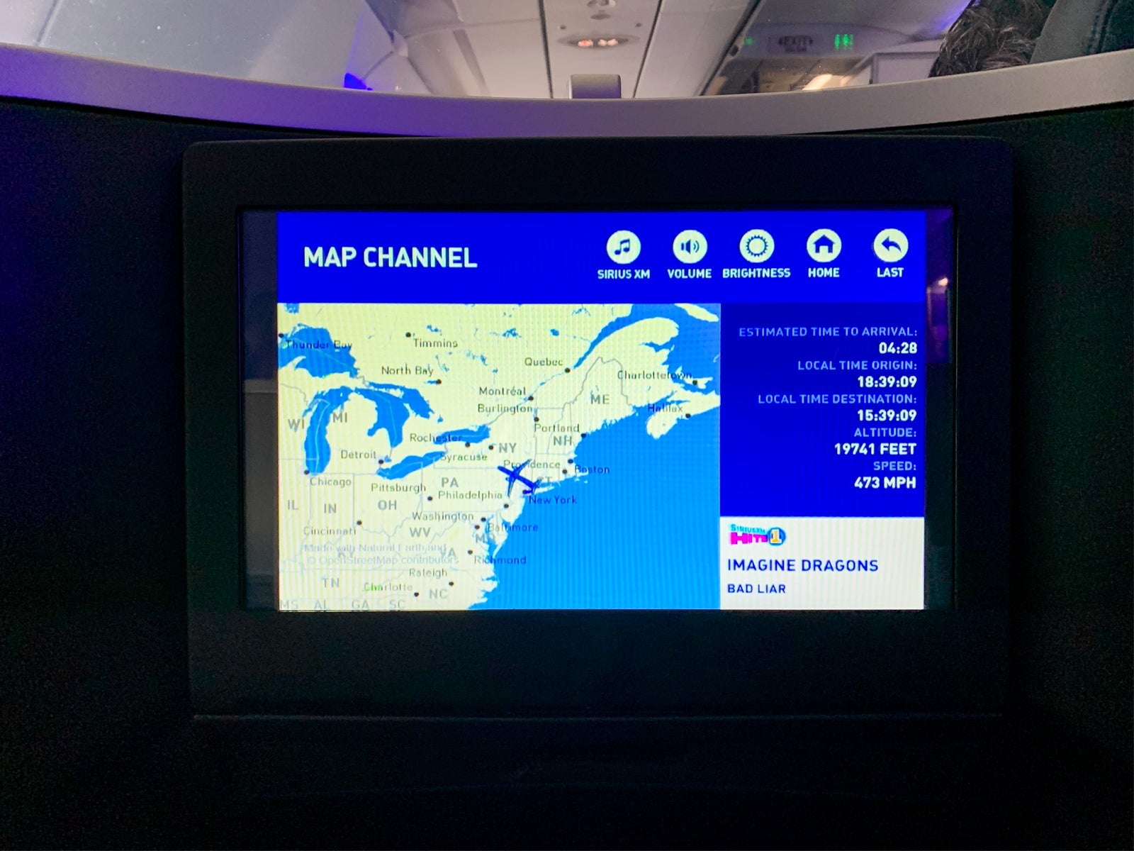 Sadly, the live map was looping and didn't feature any customizable views. I thought I'd initially found an AvGeek easter egg in audio Channel 1024, the air-traffic-control station, but it'd been disabled for this flight.
