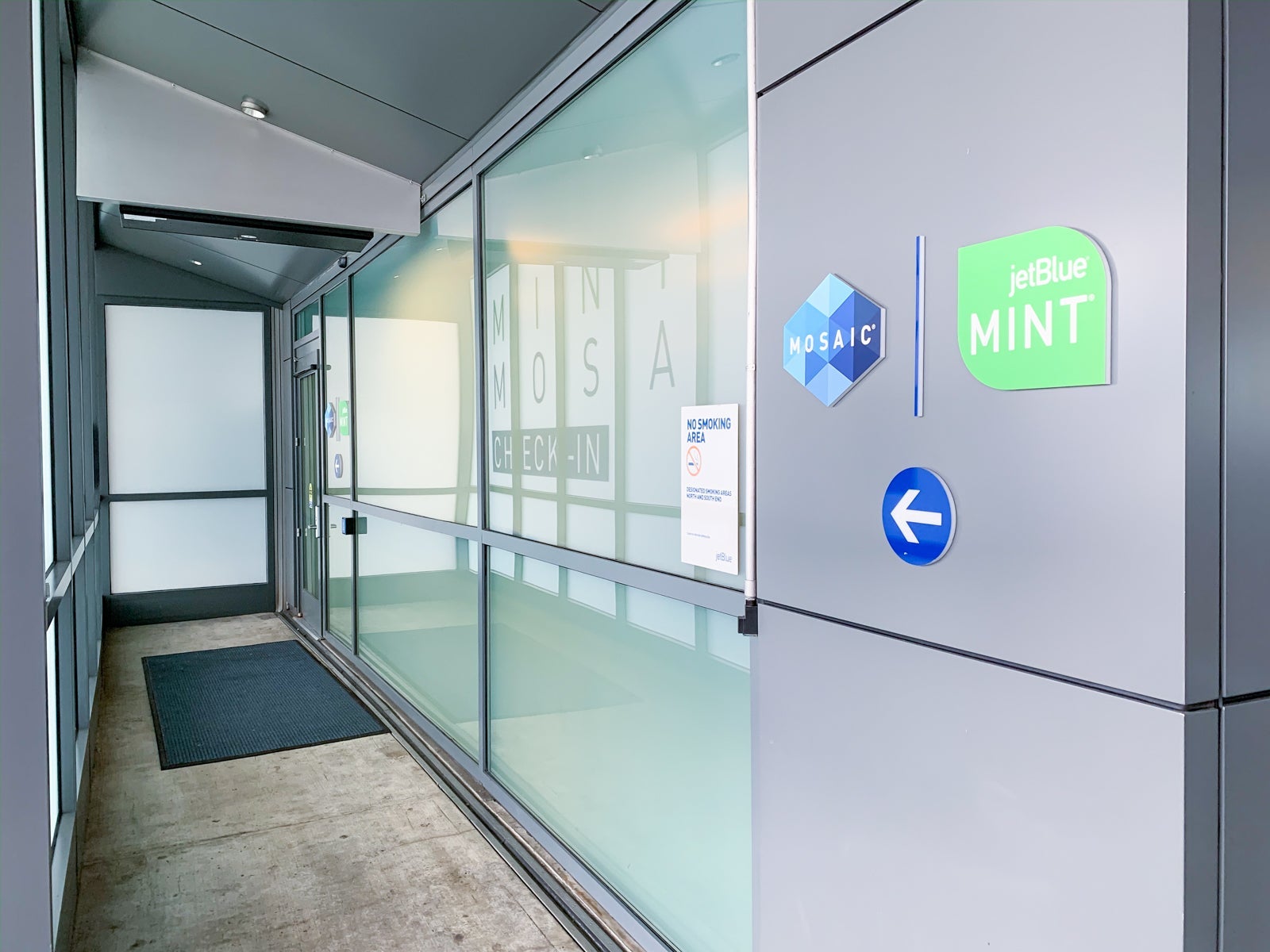 There was a small, special entrance and check-in area for Mint and Mosaic customers at Terminal 5 in New York-JFK, a hidden entrance just next to Door 7 on the departures level of the terminal. Once we were through the hallway, there were two check-in counters and two kiosks reserved for the carrier's top customers.