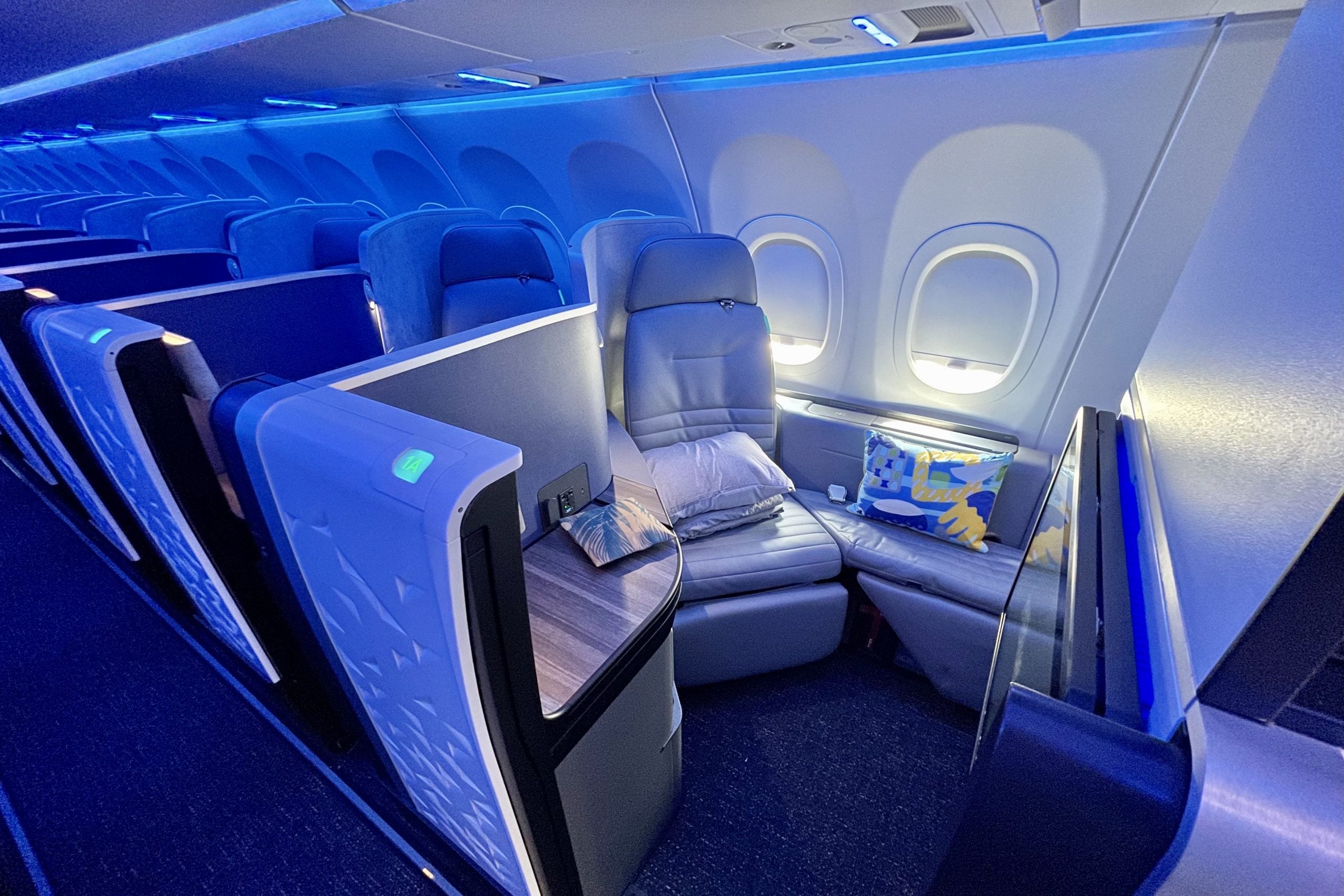 As I mentioned, there are 12 rows of suites in business class, starting with 1A on the port side and 1F across the aisle.