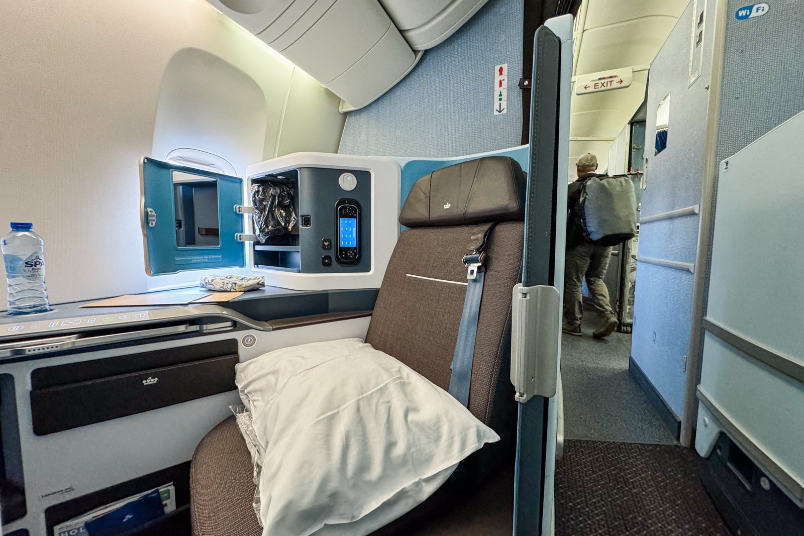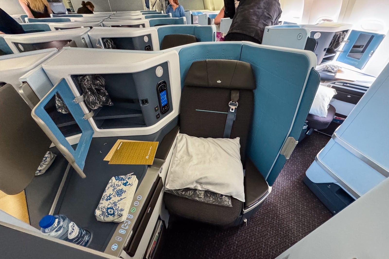 Because the airline is still in the process of rolling out the new seats to its 777 fleet, it can be difficult to pinpoint specific flights where you'll get a plane with the new product; even if you do figure it out, the plane might be swapped out on a specific route on a certain day. However, I had the chance to hop on a flight from Amsterdam to Los Angeles on which the new seats had been installed.