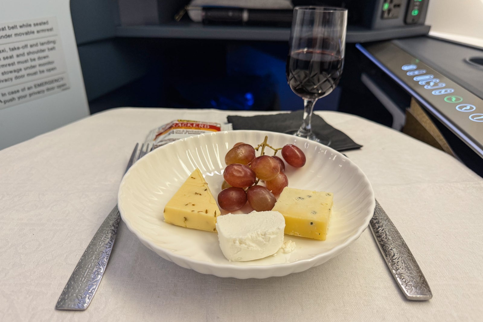 When I boarded, the food menu and wine list were waiting at my seat, so after I settled in, I perused the options.