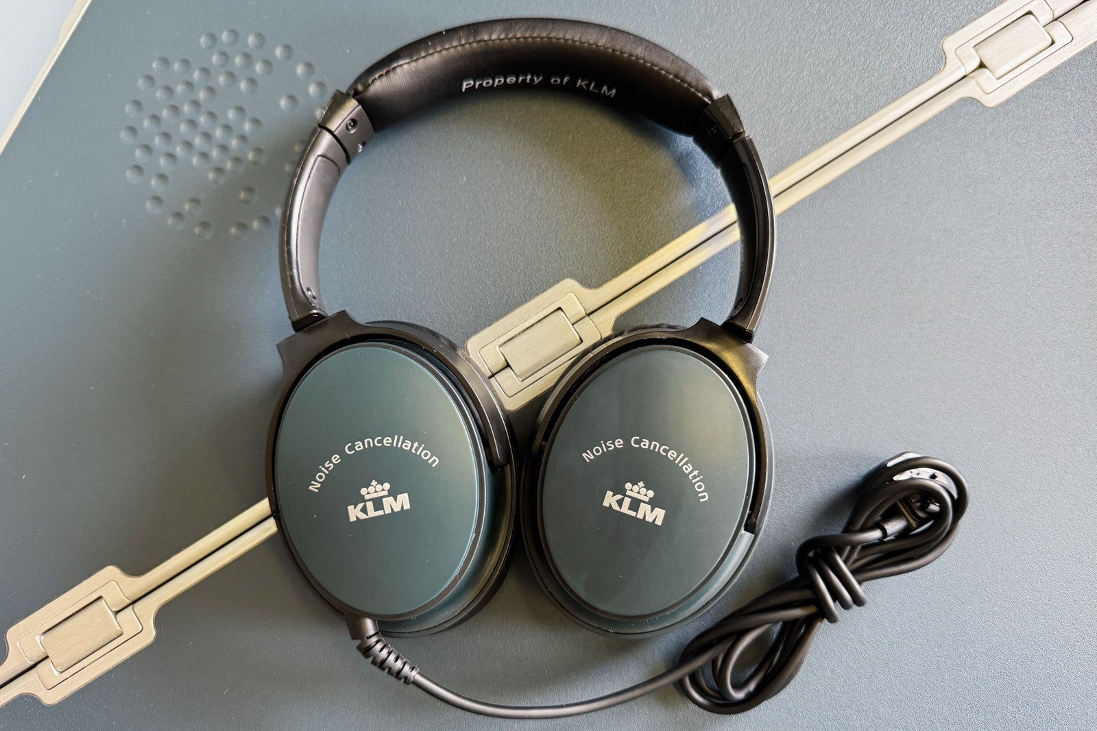 A pair of plastic-wrapped, noise-canceling headphones was waiting in the seat-side storage cubby. You could plug them into a socket next to the chair. Unfortunately, the entertainment system does not have Bluetooth connectivity.