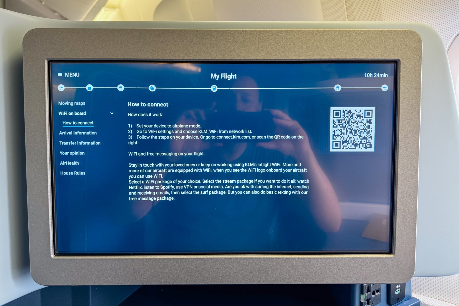 As I was mostly working and resting, I kept my screen on the dynamic map function. The system could also display instructions for connecting to Wi-Fi. It could also control the seat's lighting and call the crew.