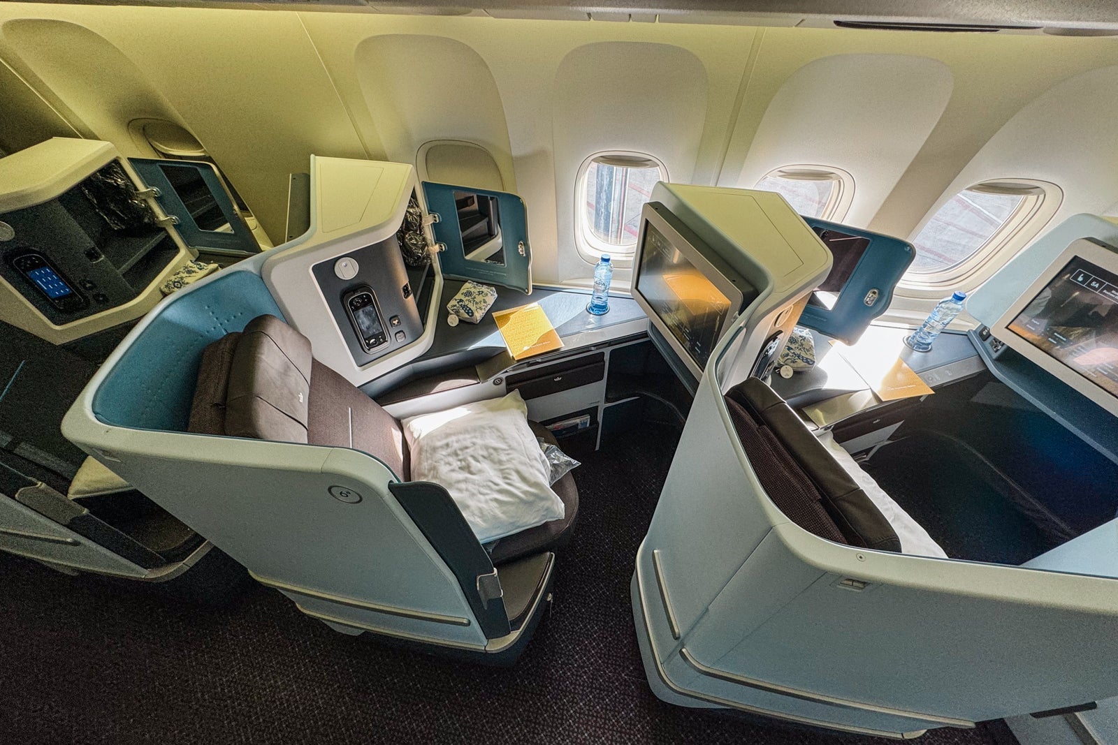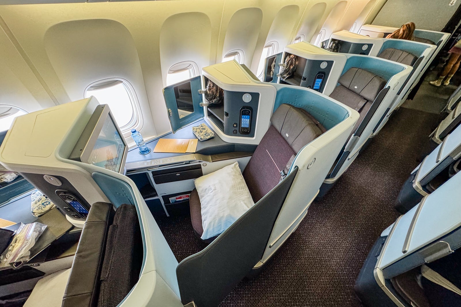 However, they do not provide as much privacy or seclusion from cabin noise as seats with larger, more substantial doors like Delta One Suites or Qatar Qsuites.