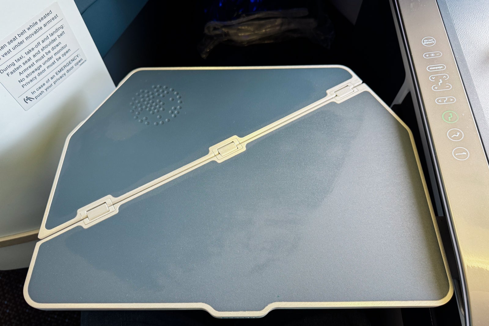 There is also a do-not-disturb button, which is handy so flight attendants don't bother you if you would like to rest. I personally prefer controls that allow you to maneuver individual parts of the seat, but shifting between the preset possibilities was still comfortable.