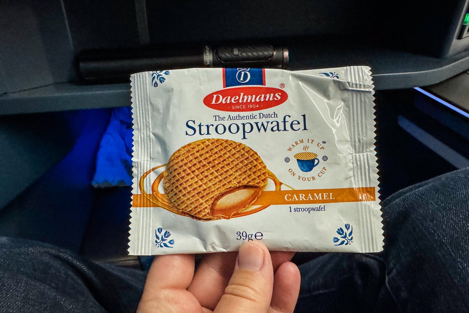 The airline serves Douwe Egberts-brand coffee, so I ordered a cup to help me perk up before landing.