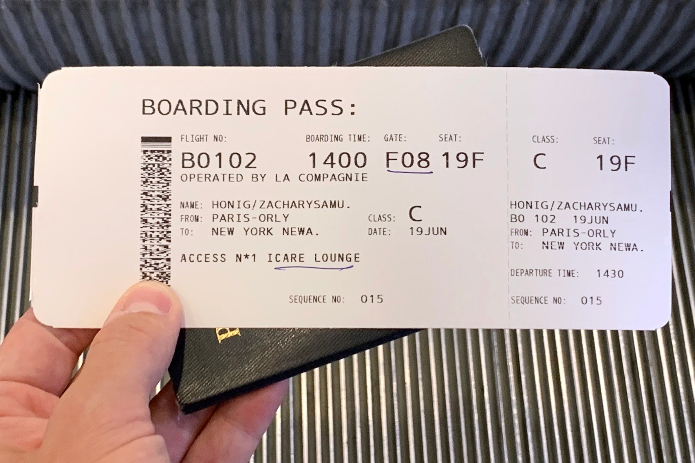 Speaking of my boarding pass — there wasn't any sort of line when I arrived at the La Compagnie desk about two hours before departure, so I was on my way in only a few seconds.