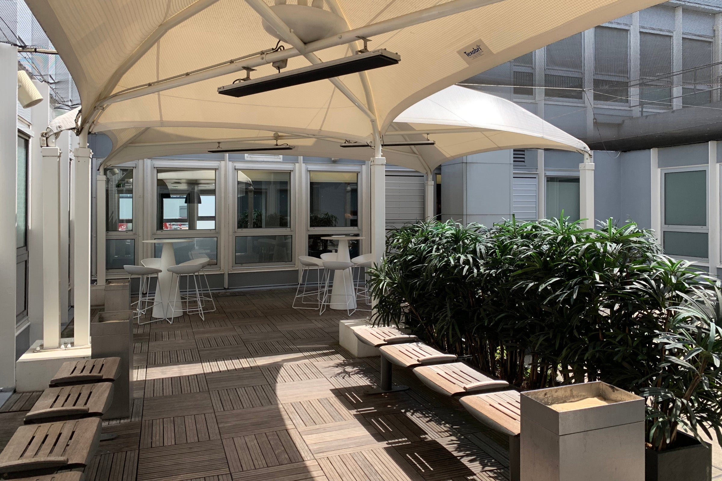 I was excited when I saw signs for a terrace, but it was really just a smoking area — there weren't any views whatsoever.