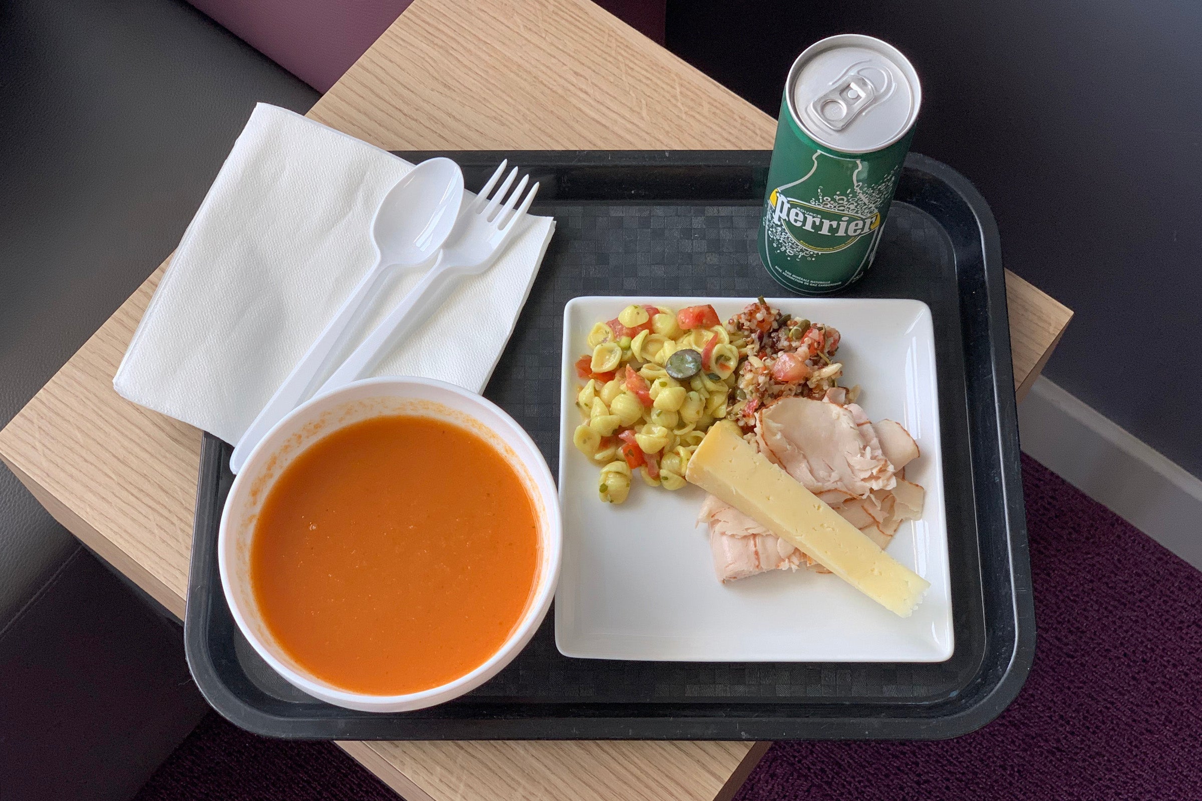 While the food didn't look spectacular, I was surprised by the quality — everything was fresh and delicious, especially the gazpacho.