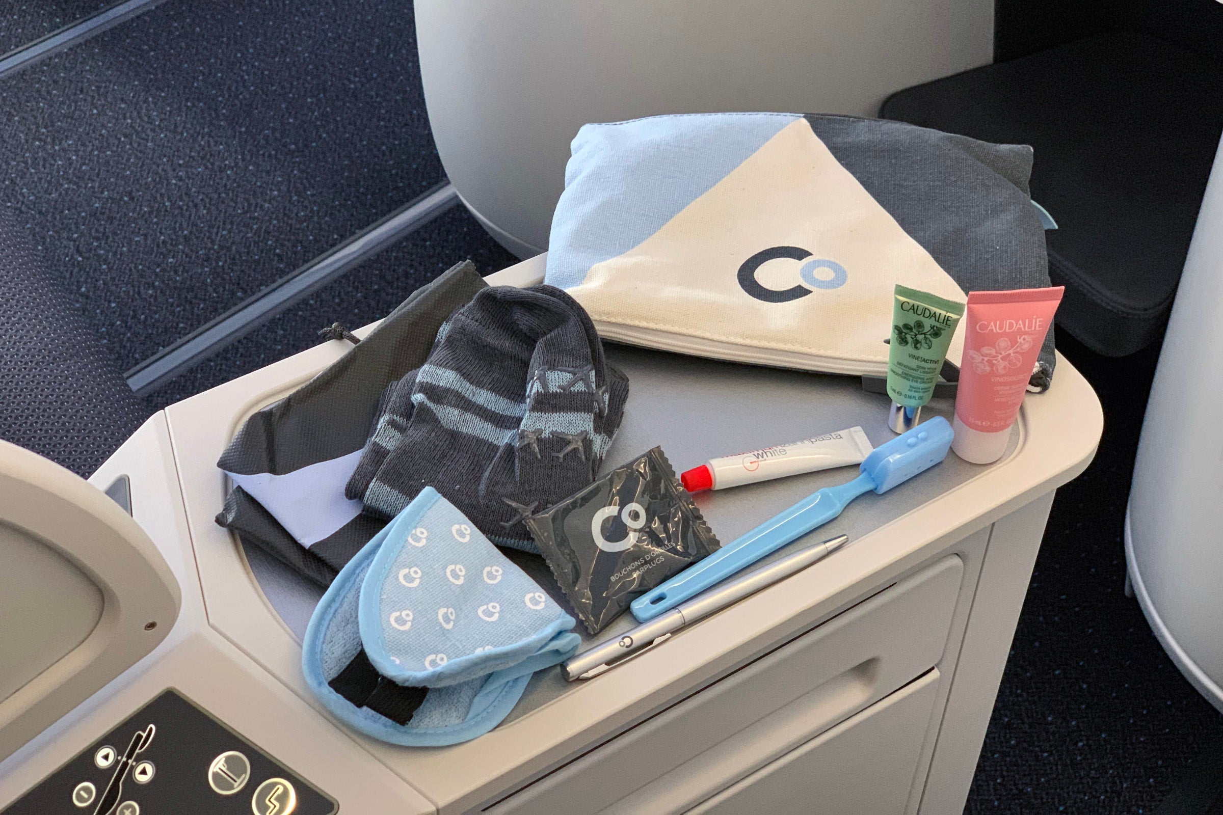 There was an amenity kit waiting at each seat when I boarded, with the usual mix of goodies: a dental kit, eye mask, earplugs, disposable socks and various creams were all included, as was a pen, which could certainly come in handy for flyers without Global Entry.
