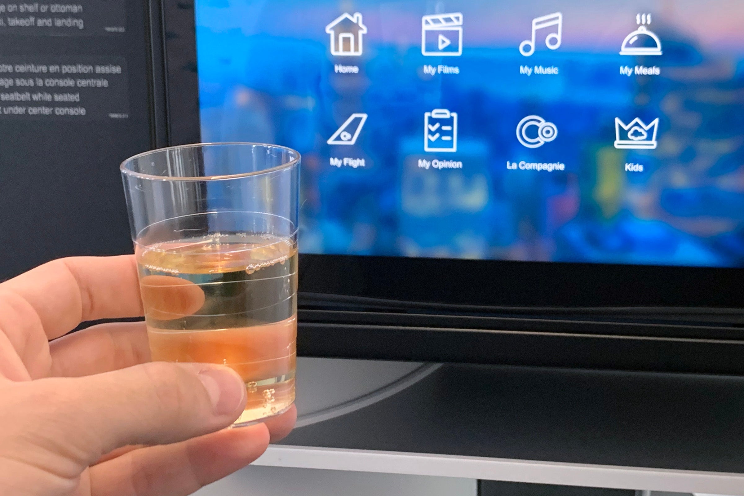 Shortly after boarding, a flight attendant came by offering juice and Champagne.