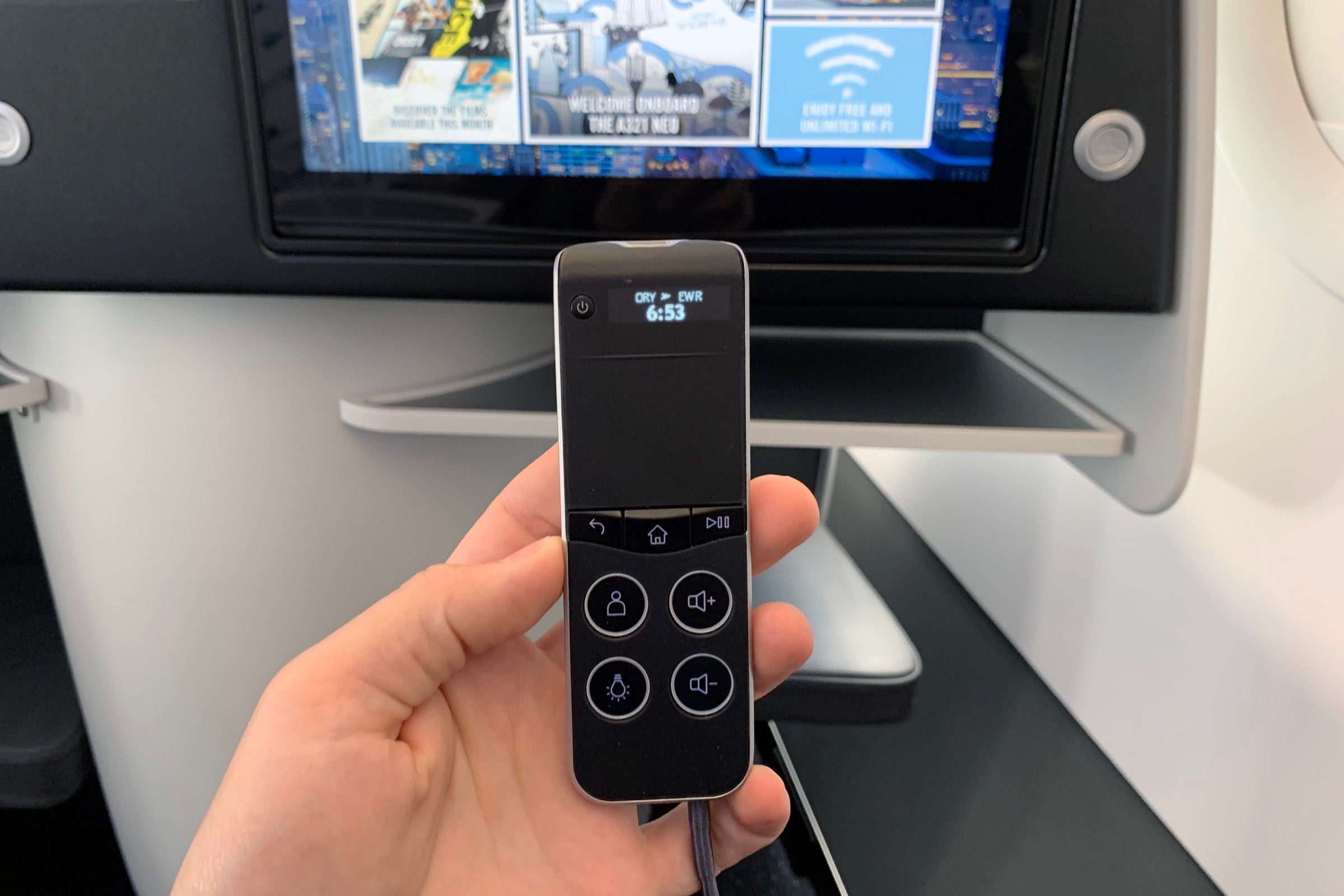 I could control content using the touchscreen or the handheld wired remote, which also displayed a nifty flight countdown.