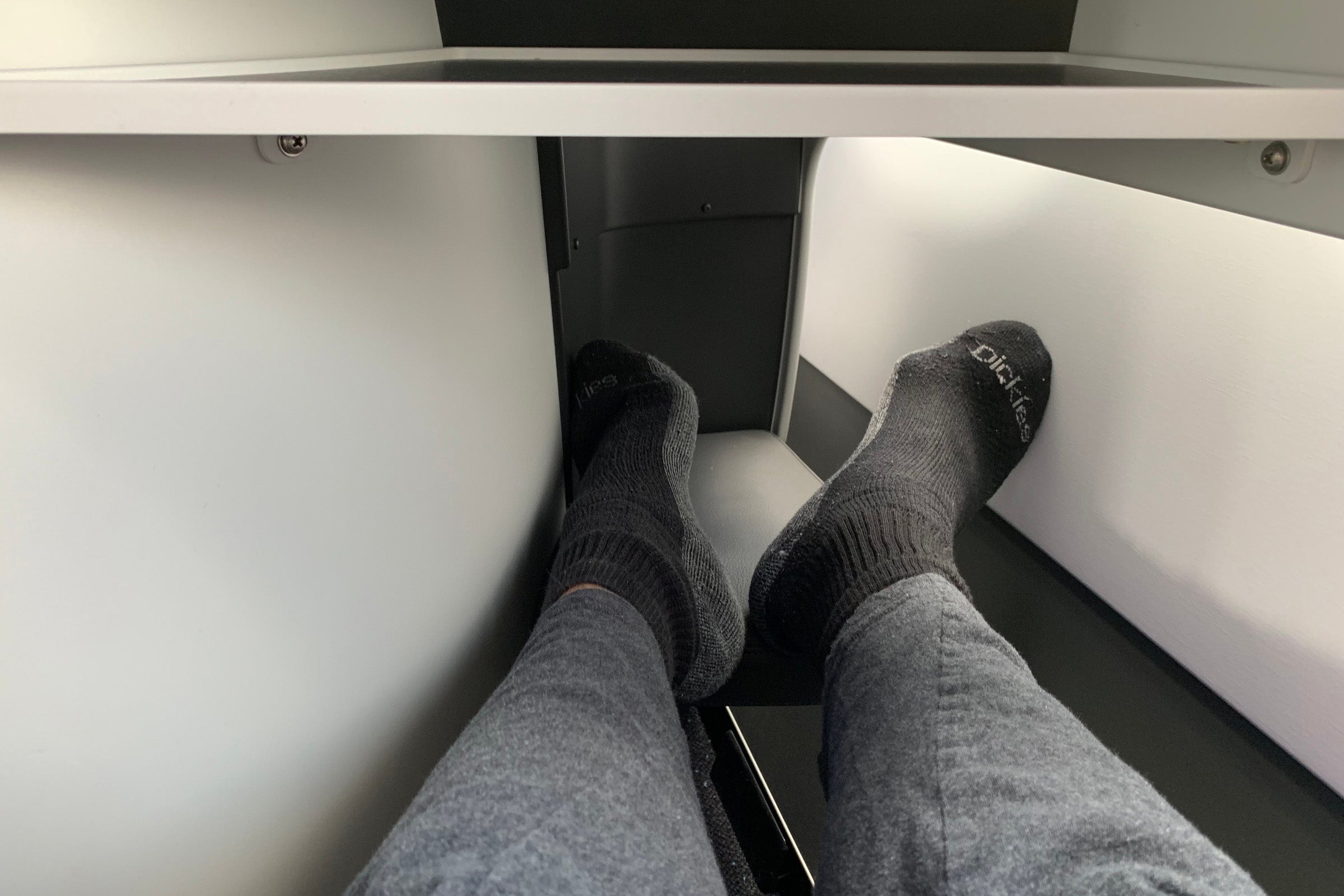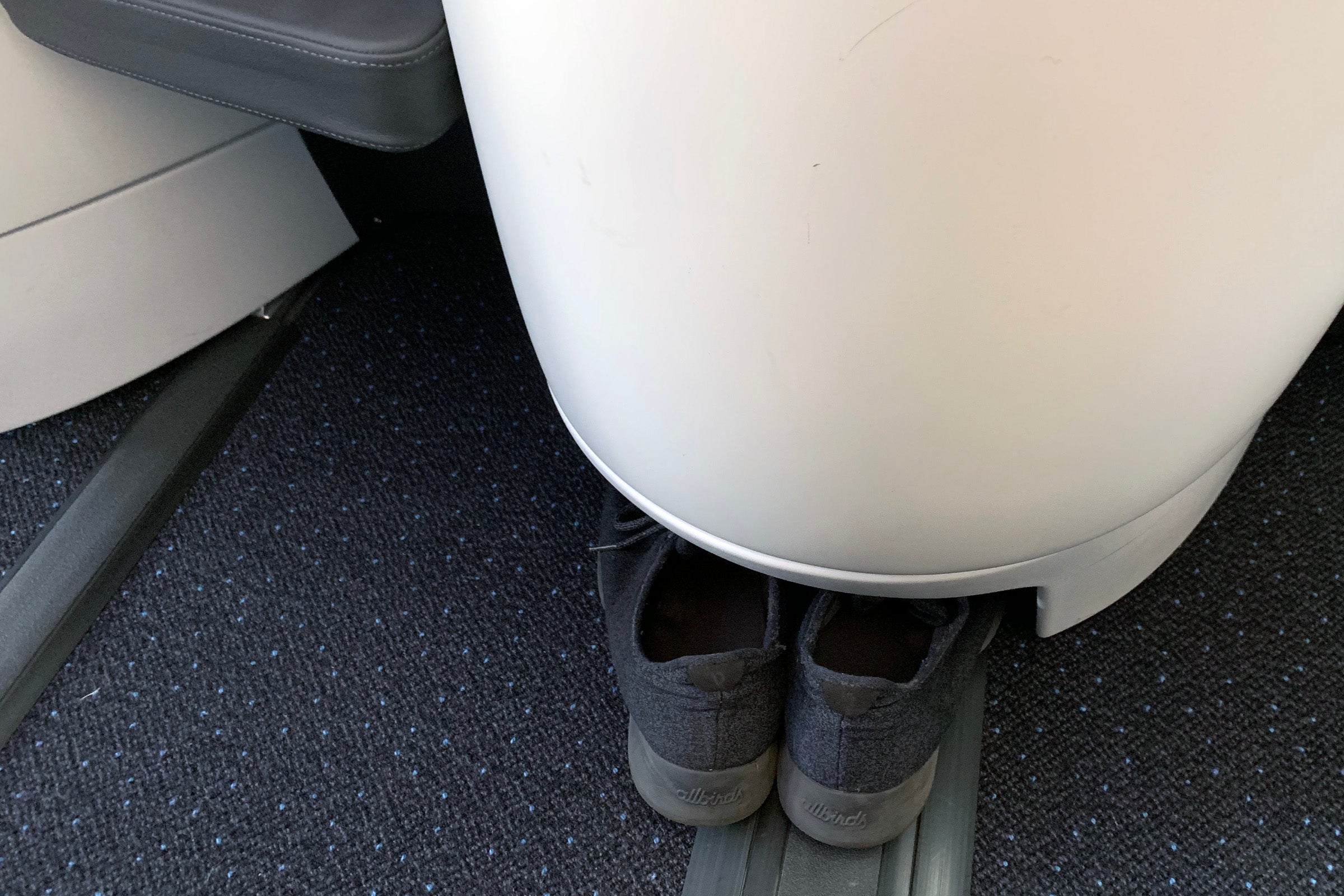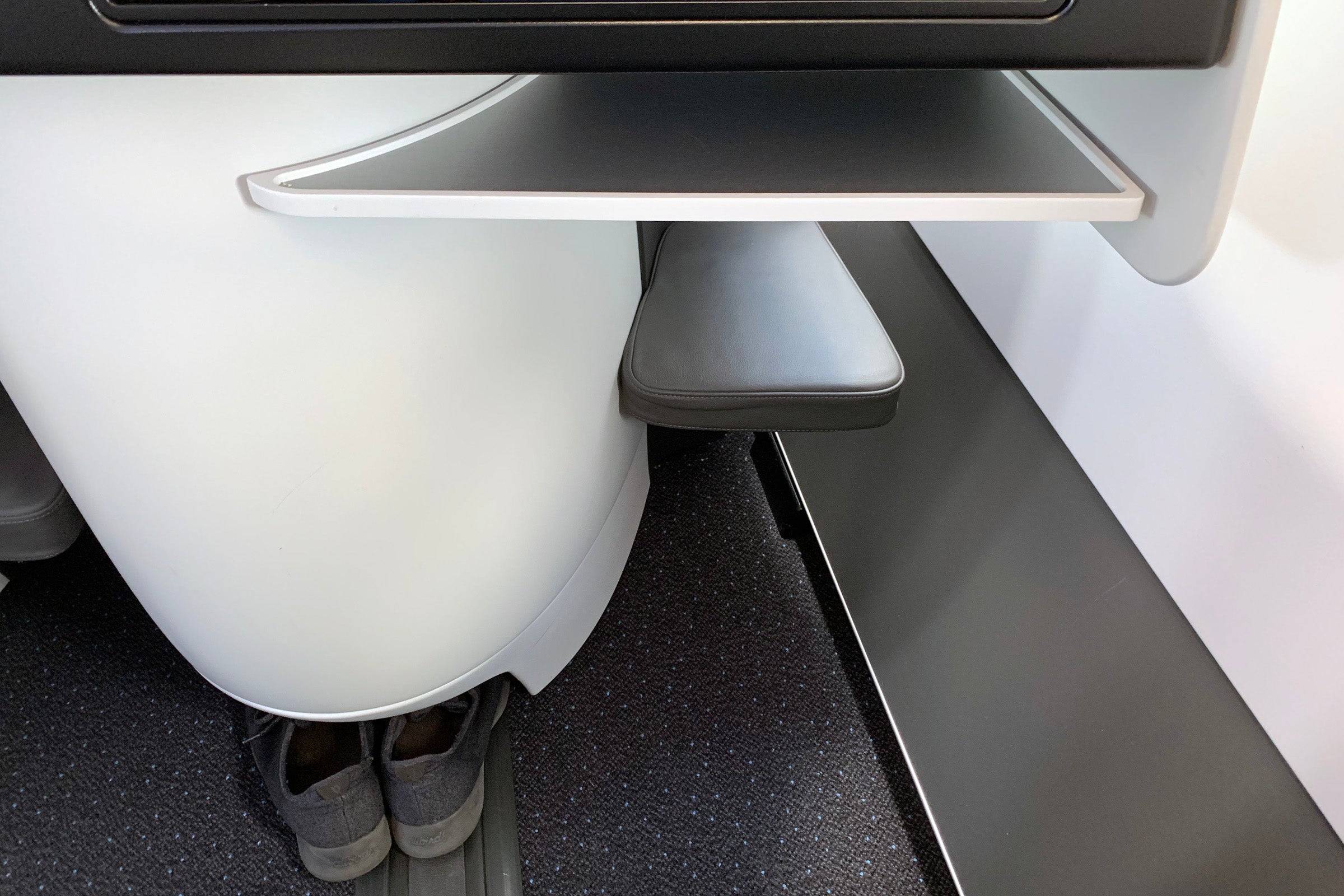 There's also a shelf below the inflight-entertainment screen, and then a small baggage compartment underneath the ottoman.