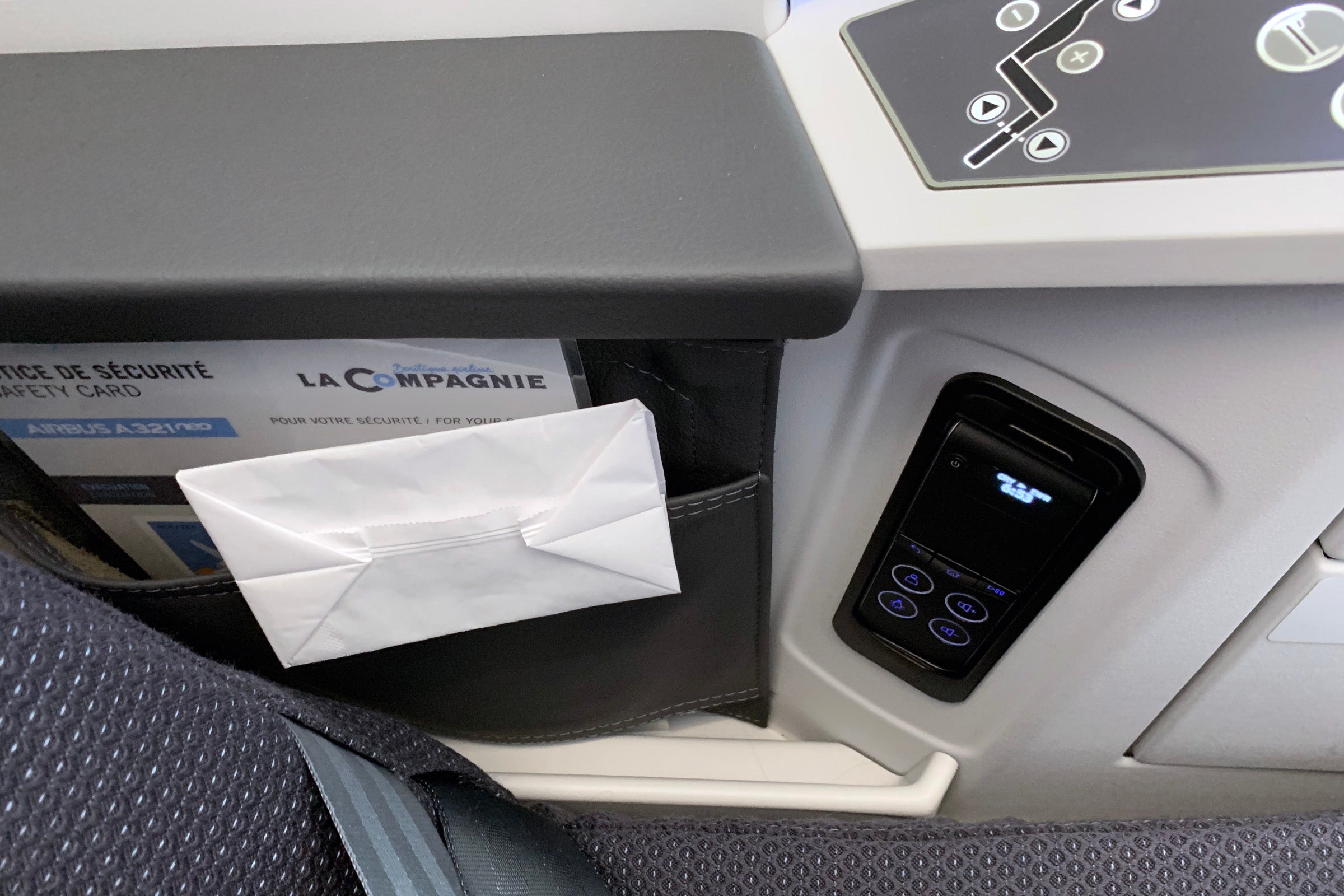 La Compagnie offered headphones, too, but they were pretty awful, so I'd recommend bringing your own noise-canceling set.