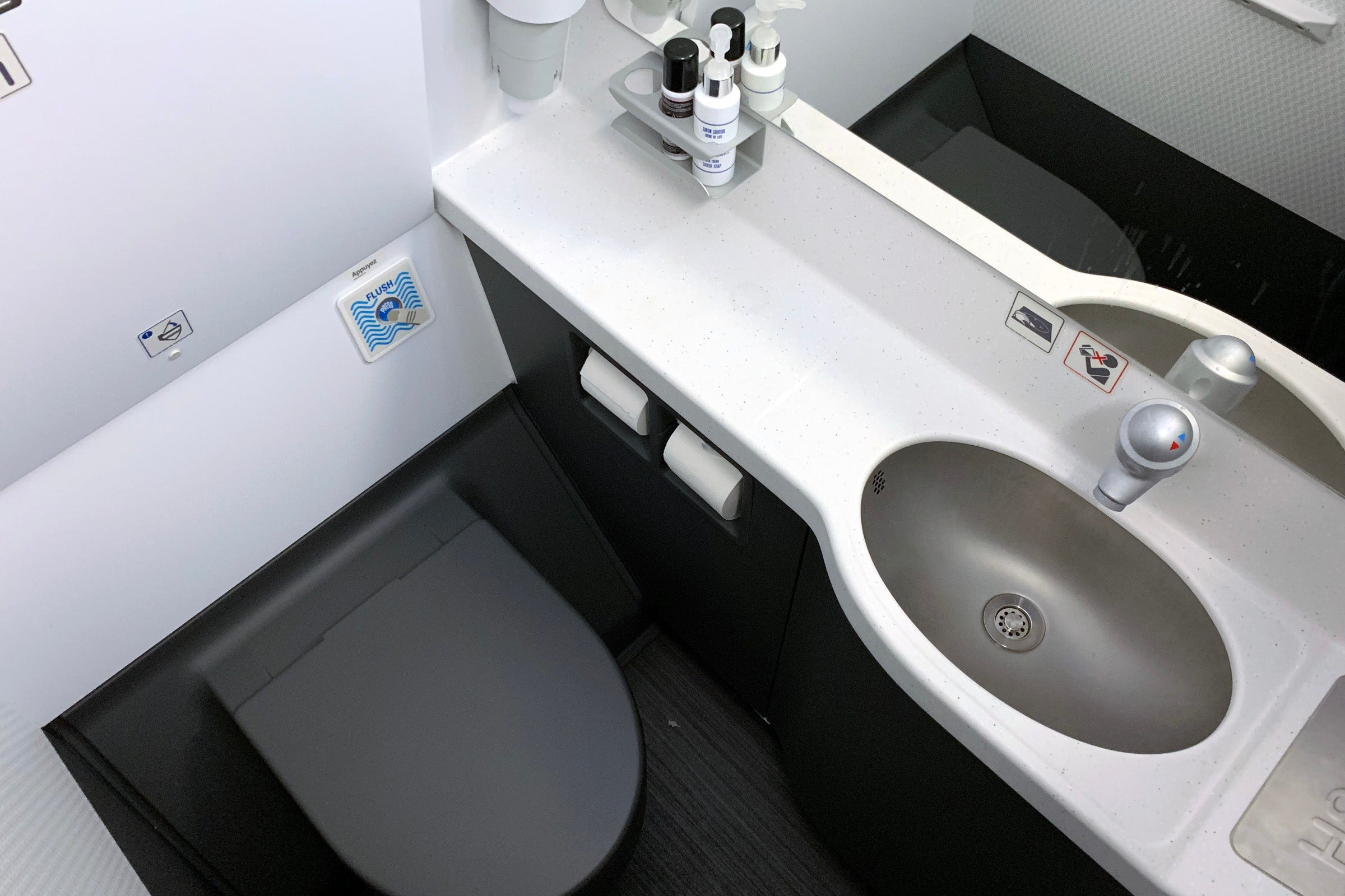 The cabin has three lavatories, one up front and two by the rear galley. There was never a wait during my flight, which made sense given that there were just 30 or so passengers onboard.