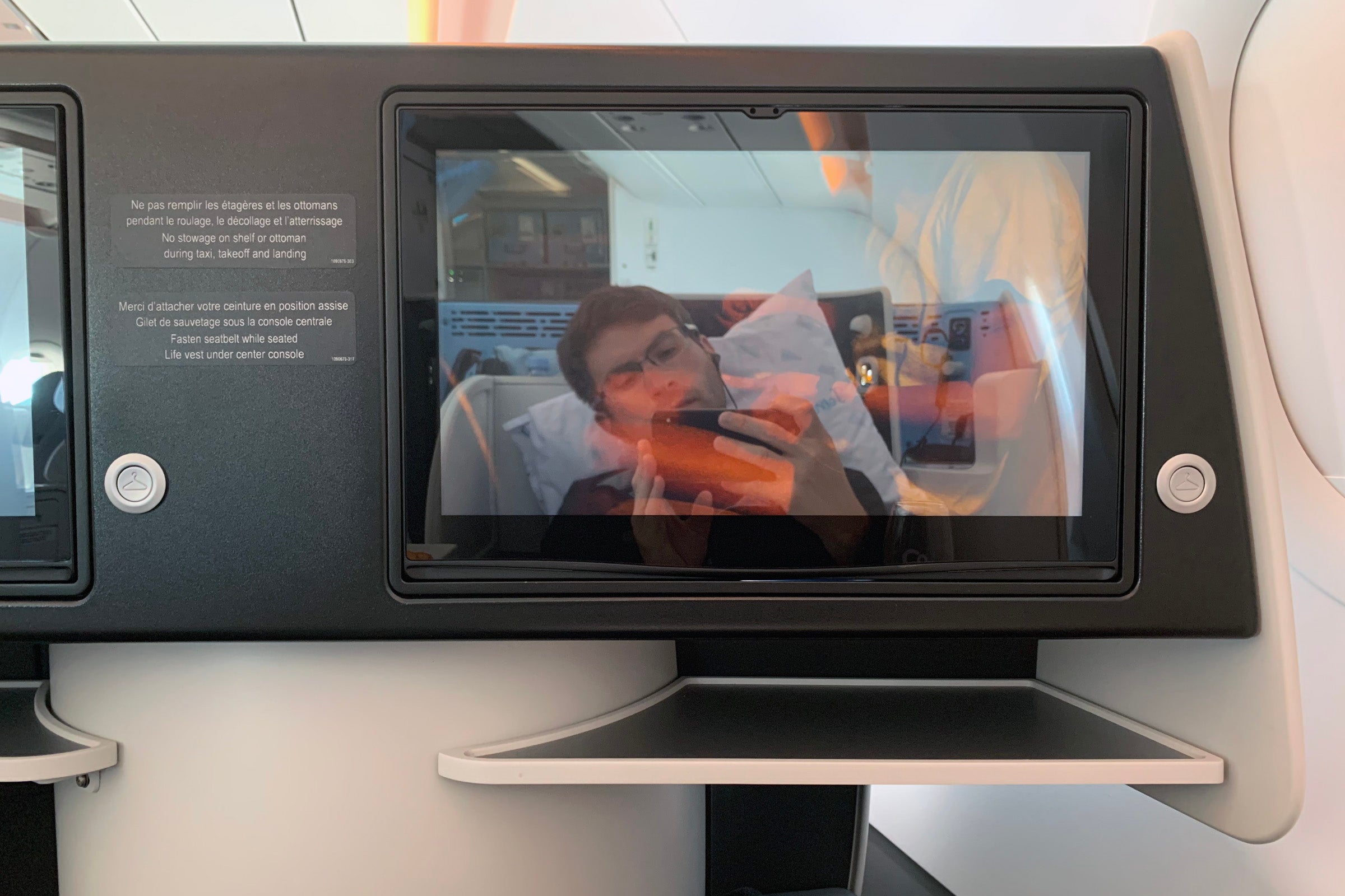 I'm normally a big advocate of seatback screens, but La Compagnie's were so reflective. It was next to impossible to see anything in some scenes, especially when passengers were required to have the window shades up during taxi and takeoff, along with the final 30 or so minutes of the flight. Looking at the bright side, at least the display made for a fun selfie mirror? It certainly wasn't good for much else during part of the flight.