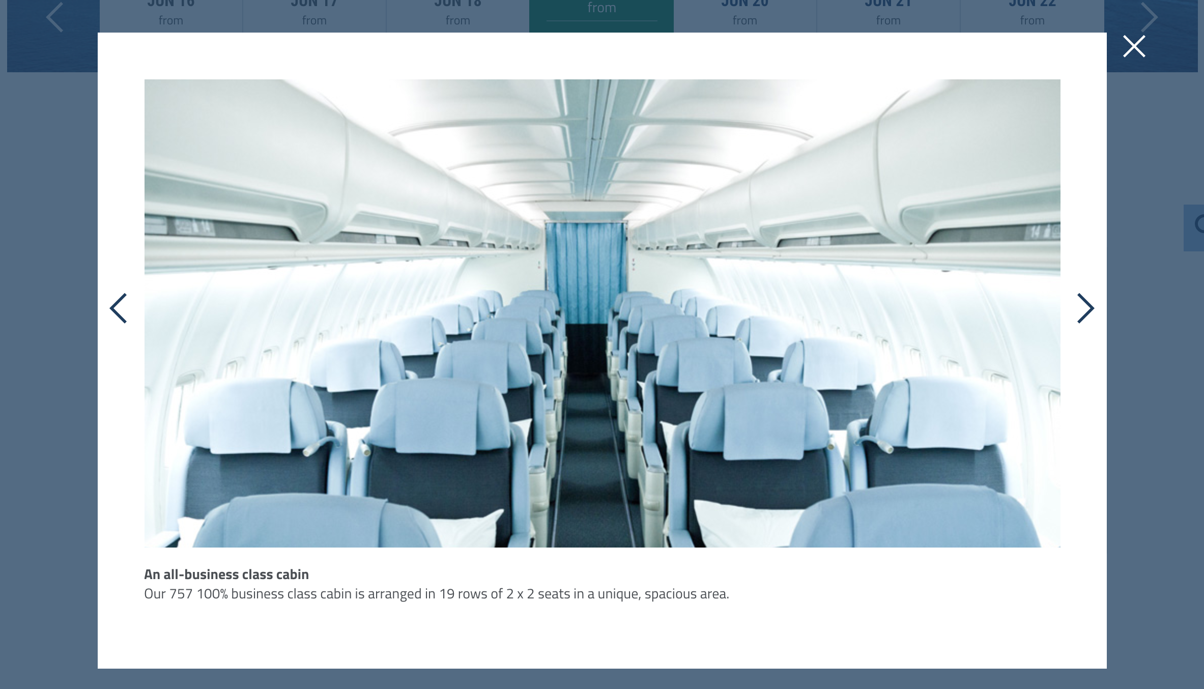 While this is what you see when you tap the 757 — a dated, angle-flat cabin. It's a very big difference.