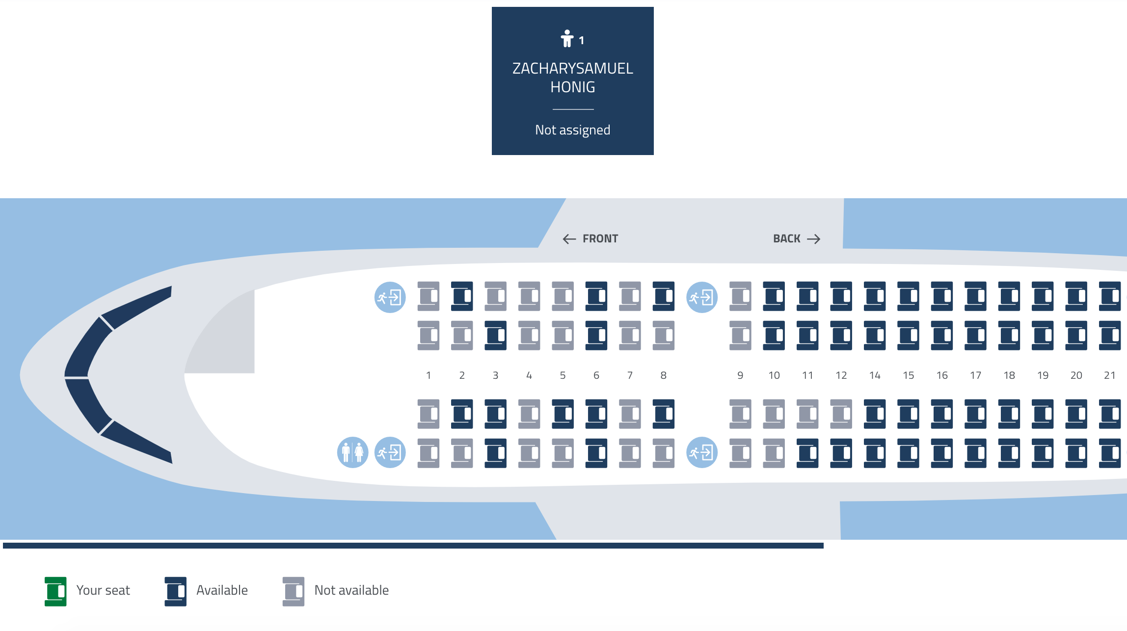 As I mentioned, seats in Row 21 were blocked — a passenger actually had a boarding pass for 21A, but a flight attendant asked her to move up to 20A, instead, explaining that Row 21 was a bit noisy with the galley just behind.