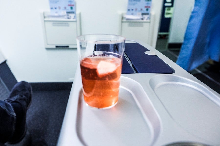 For pre-departure drinks, I had a choice of cranberry juice or a cranberry Champagne mix with a little gummy bear treat in it. It was a nice change of pace, and I give La Compagnie credit for providing something a little unexpected.