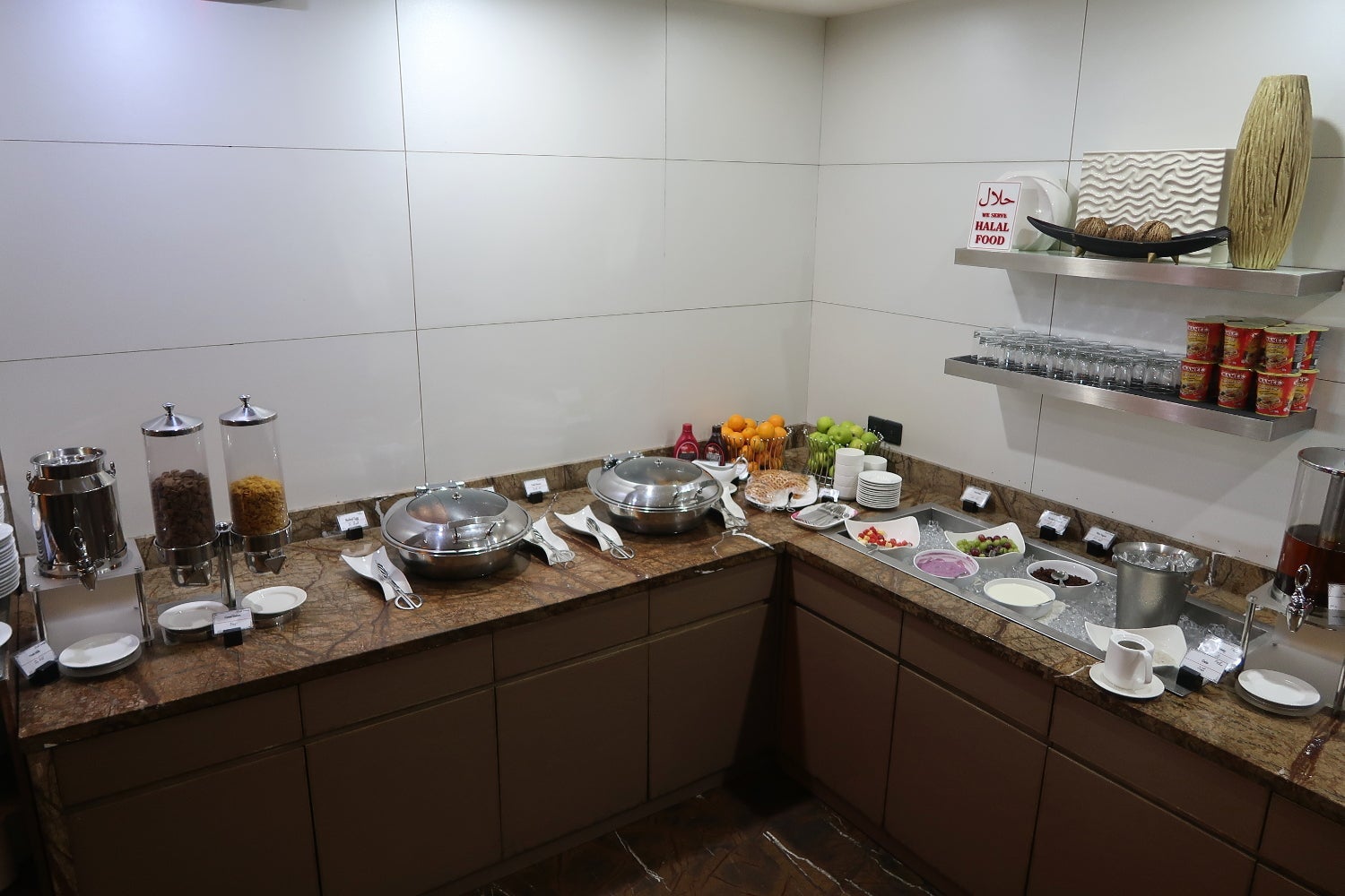 Notably missing: alcohol. We visited the lounge in the morning, so perhaps some of the breakfast offerings are replaced with a bar later in the day. The page for the Leeli Lounge on Oneworld's website says alcoholic beverages are available, it seems this lounge may be dry because other passengers have reported a lack of alcohol later in the day.