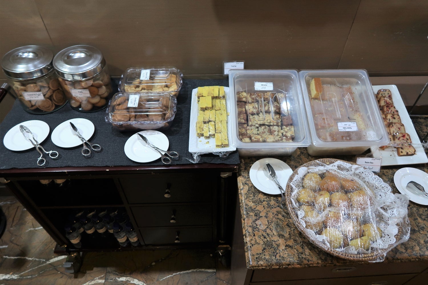 There were pastries, cookies and sweet breads. These were all stored in containers or covered in wrap to preserve their freshness.