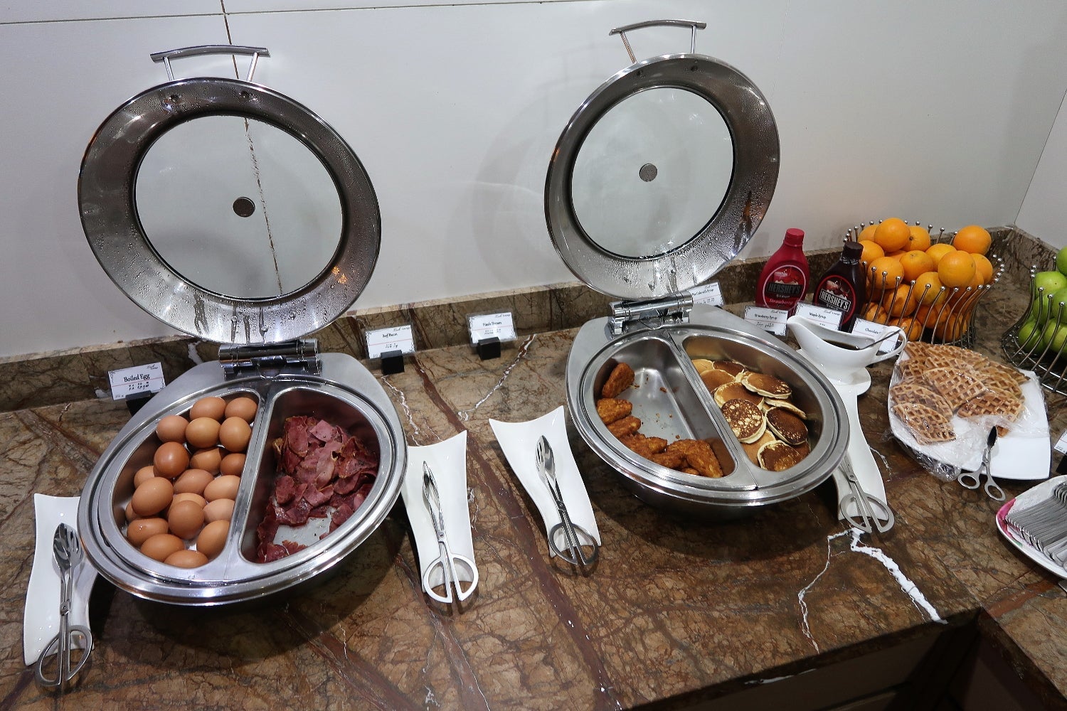 When we visited the lounge mid-morning, breakfast foods were available but there also seemed to be a selection of foods that were likely available all day. The sheer amount of food offered was impressive, though some options weren't especially appealing.